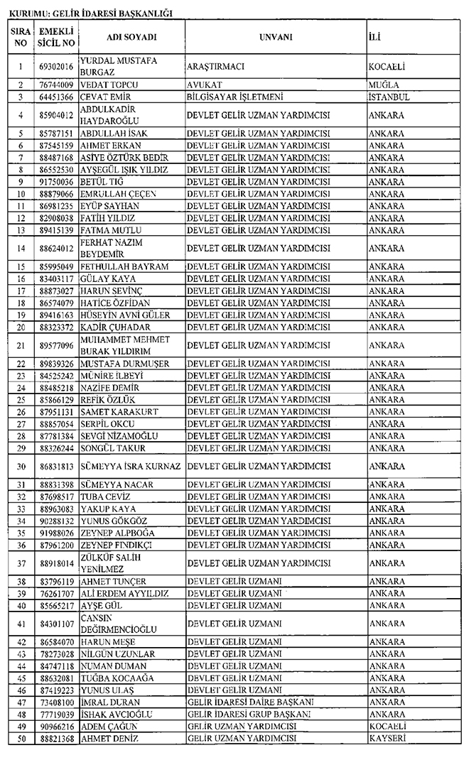 679 ile KHK ile Maliye Bakanlığından ihraç edilenler