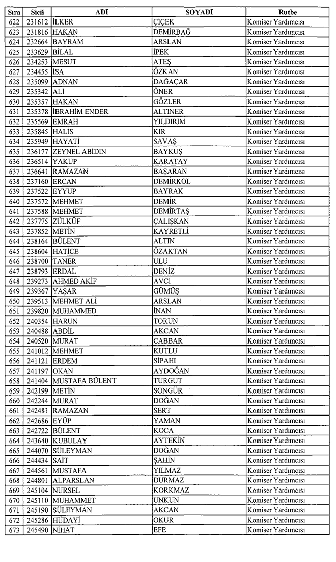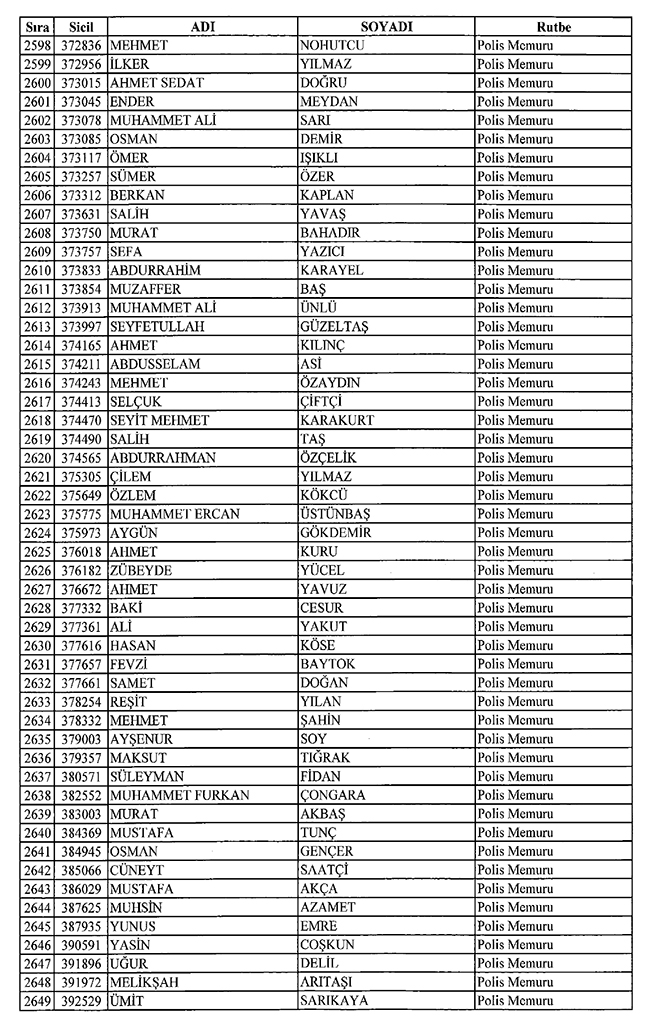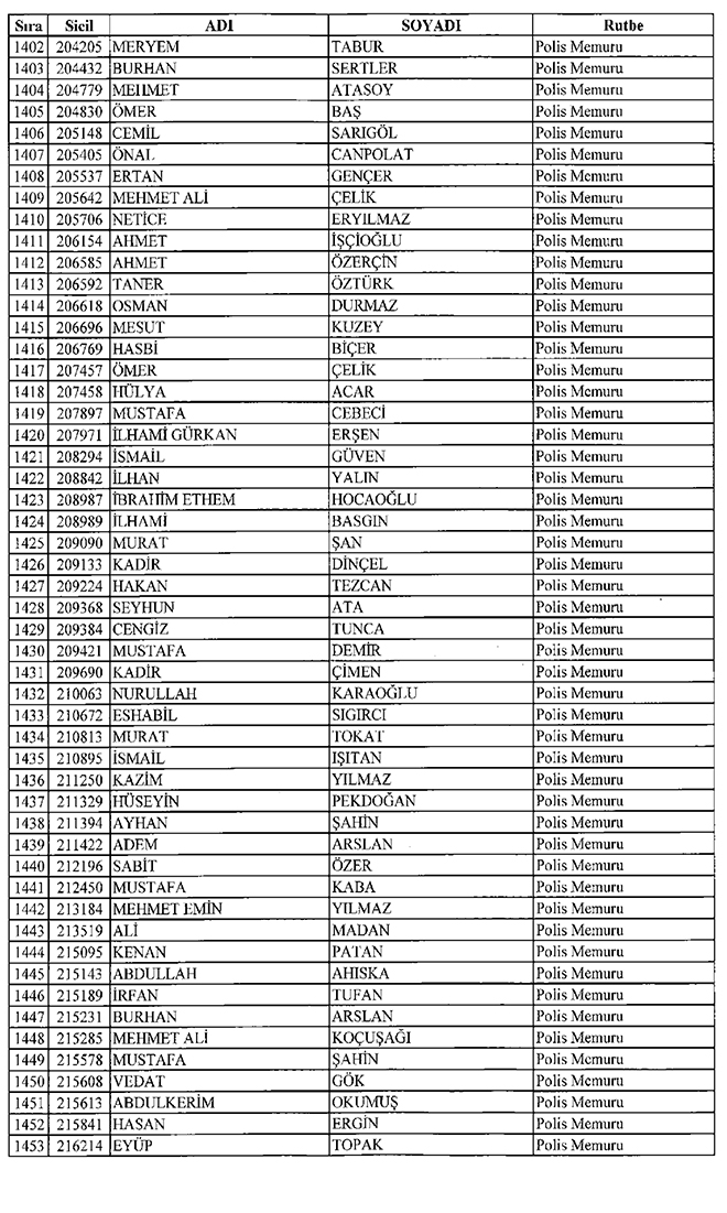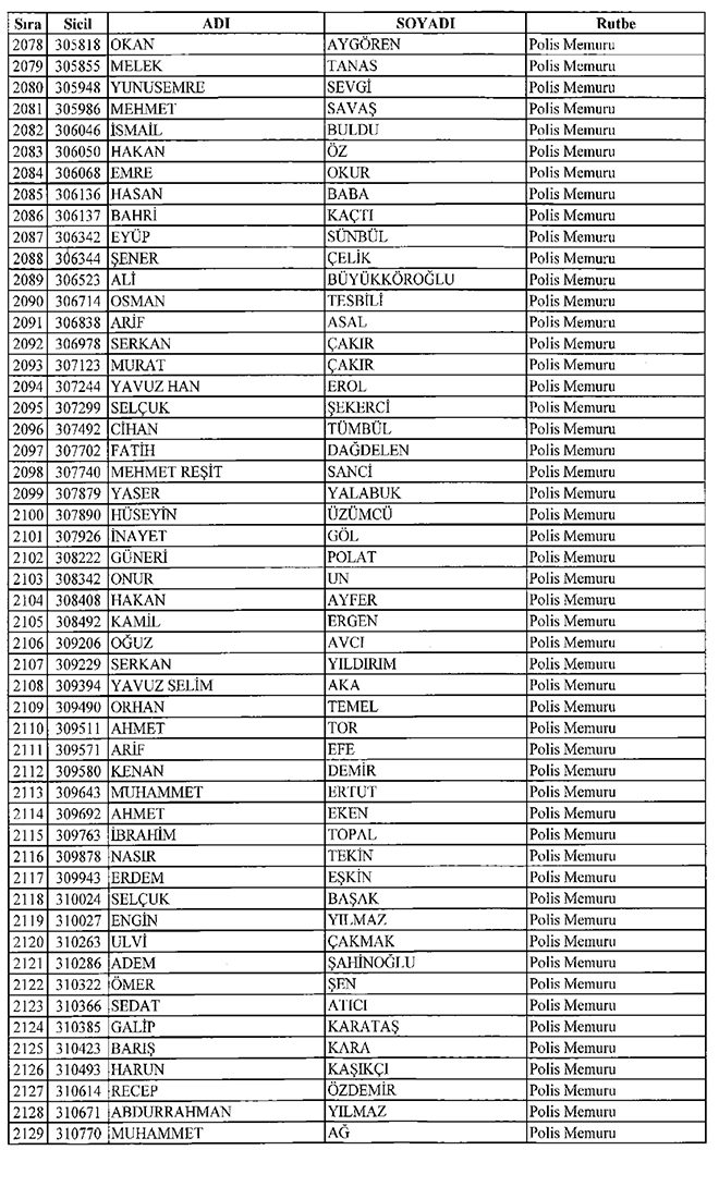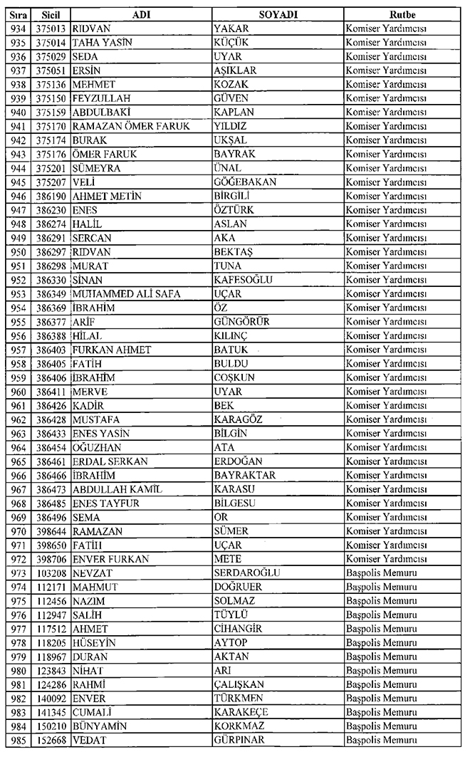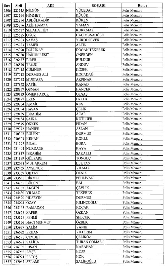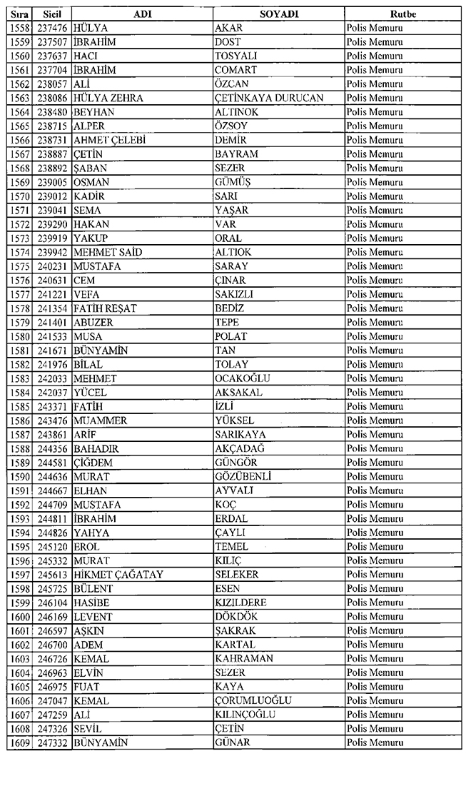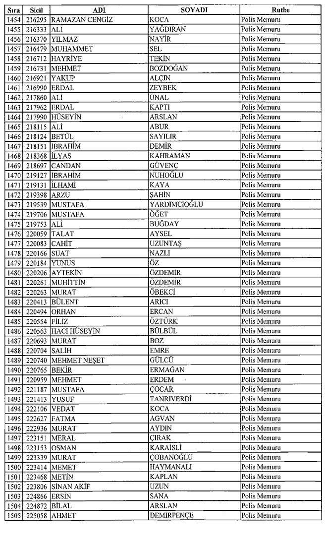 679 sayılı KHK ile Emniyet'ten ihraç edilenlerin listesi