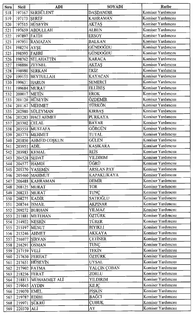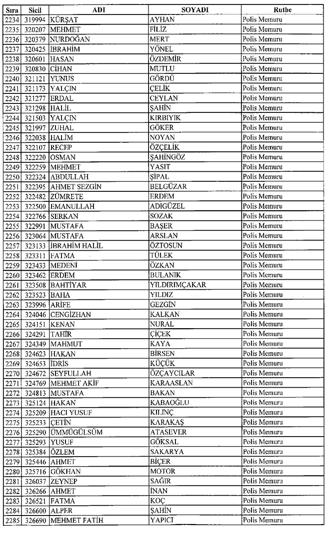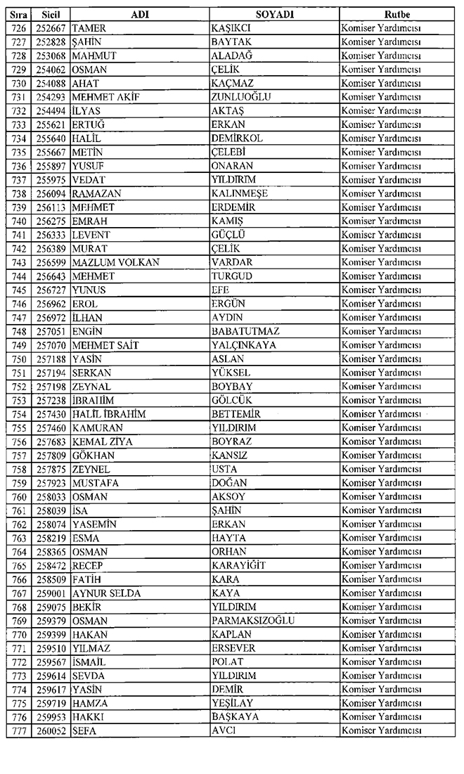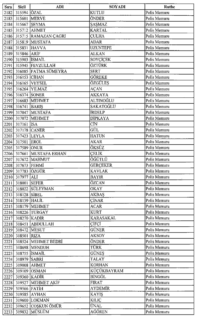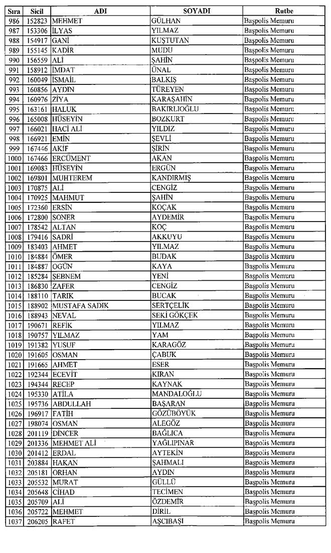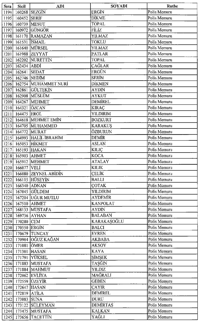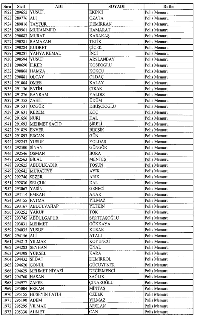 679 sayılı KHK ile Emniyet'ten ihraç edilenlerin listesi