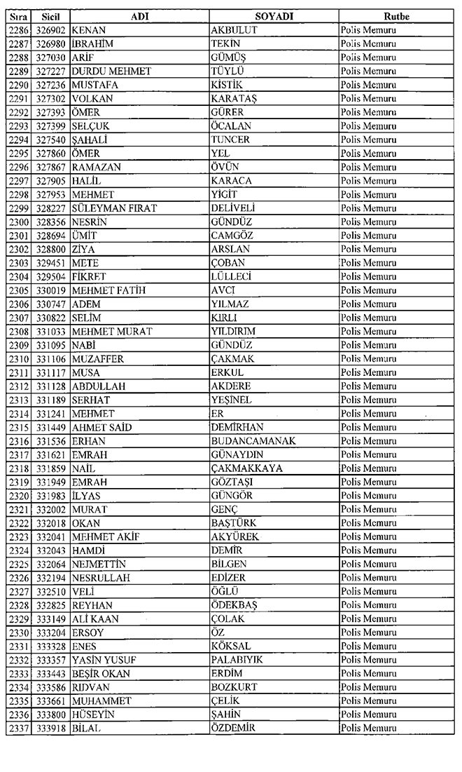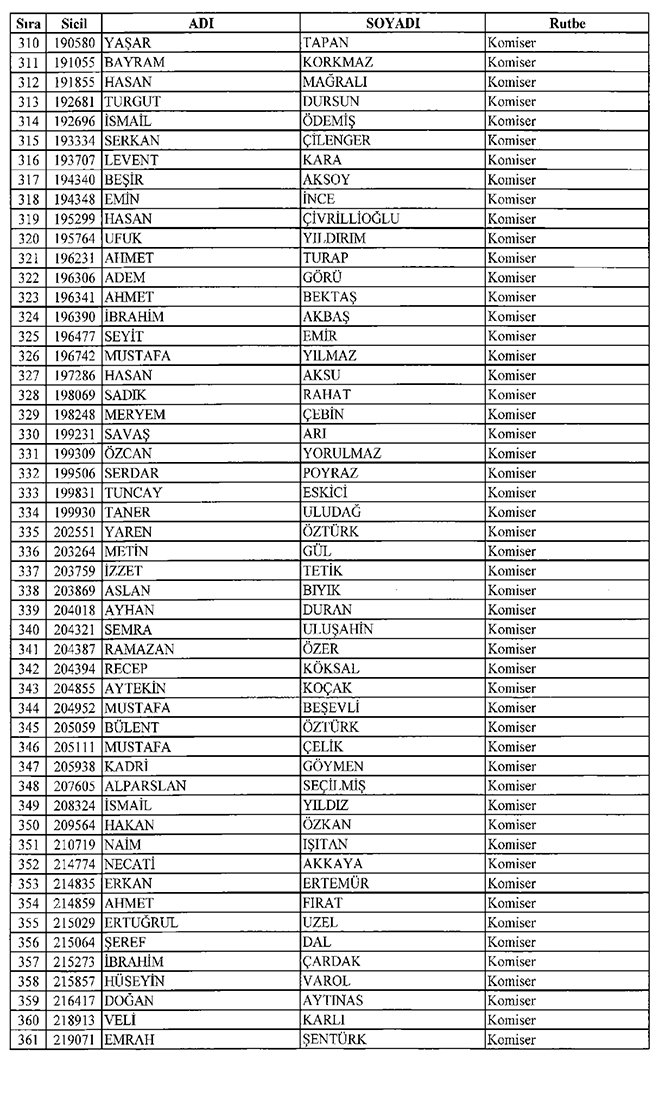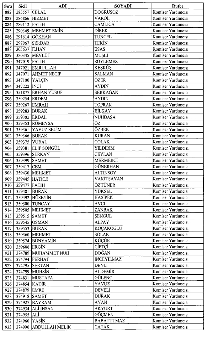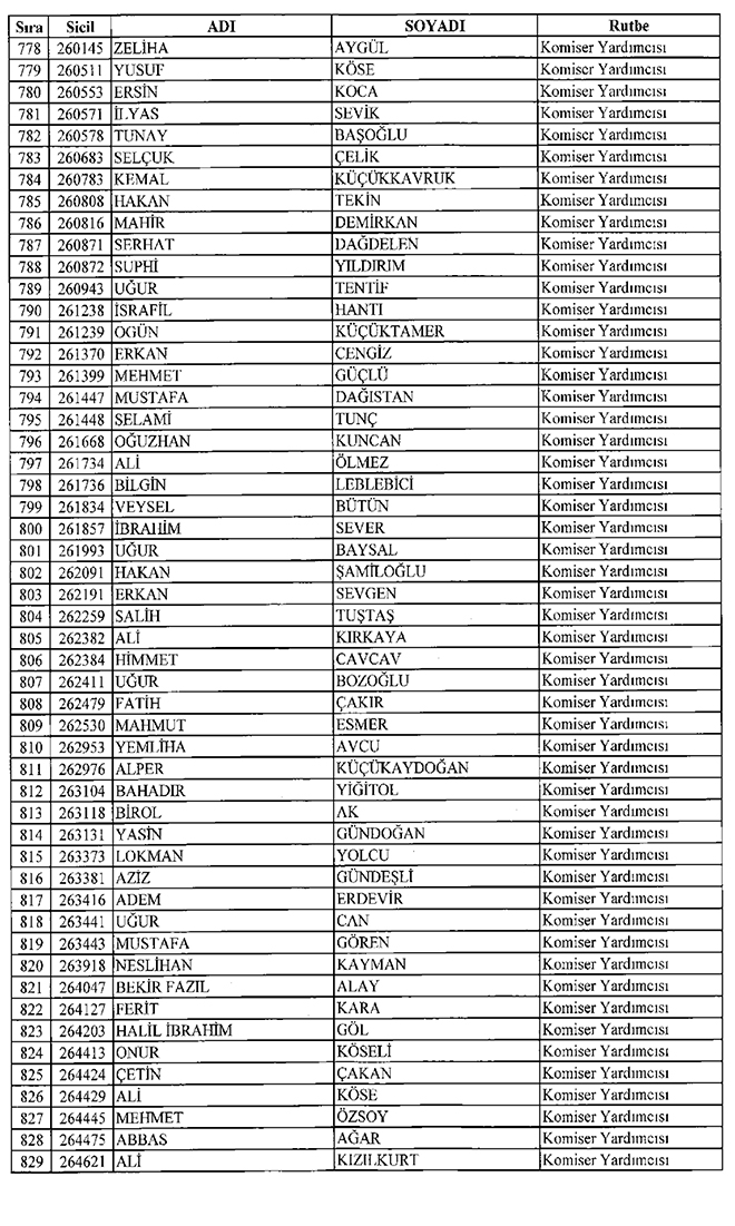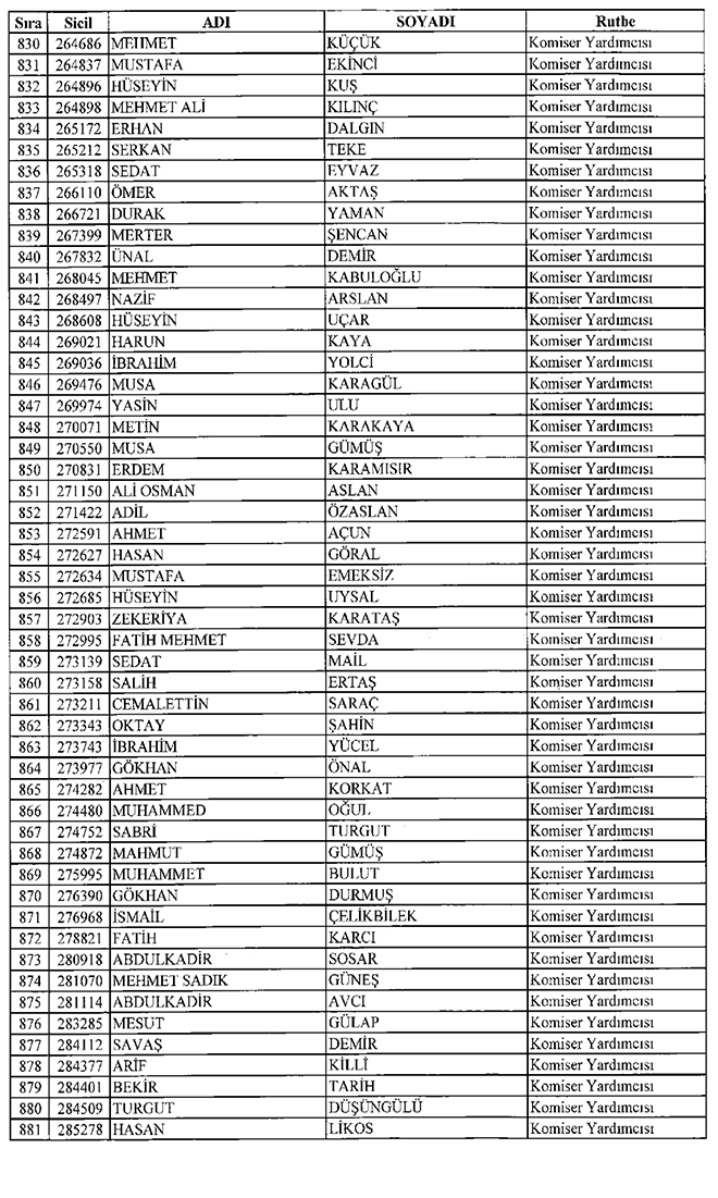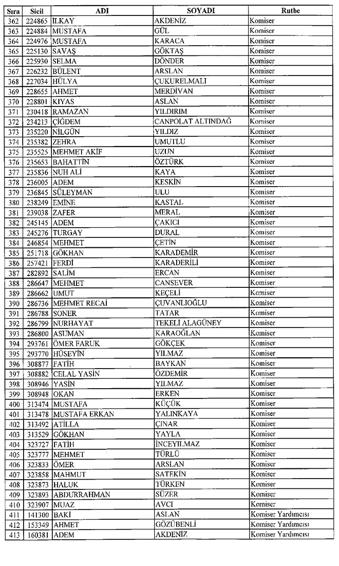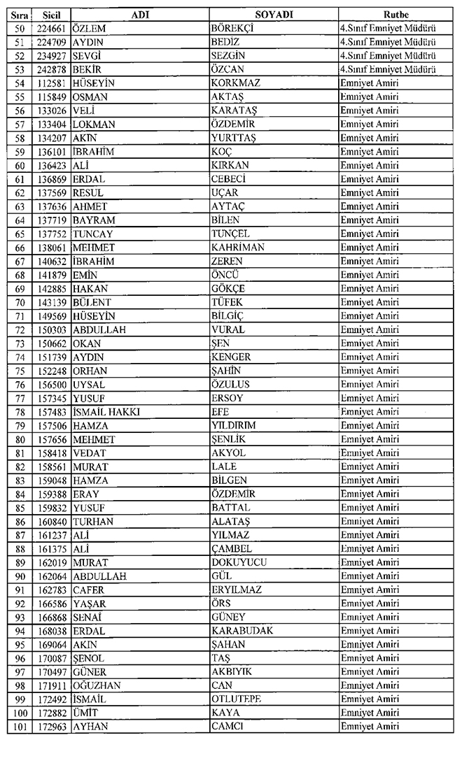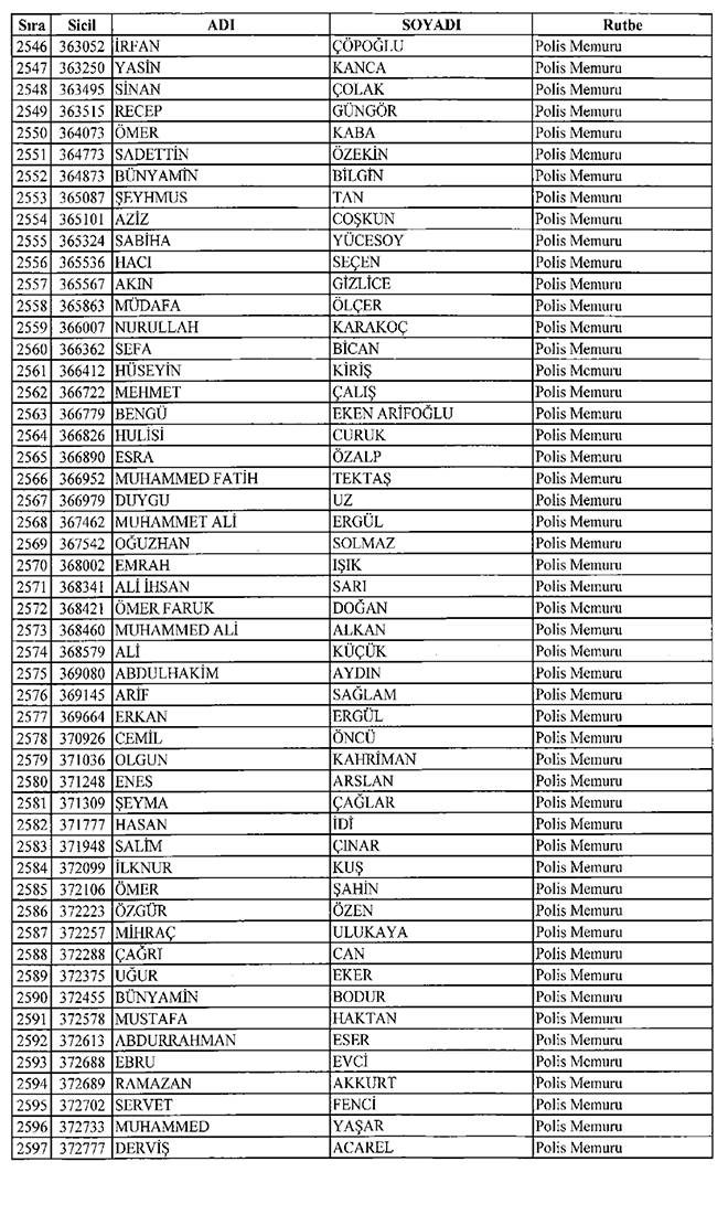 679 sayılı KHK ile Emniyet'ten ihraç edilenlerin listesi