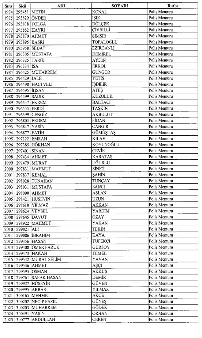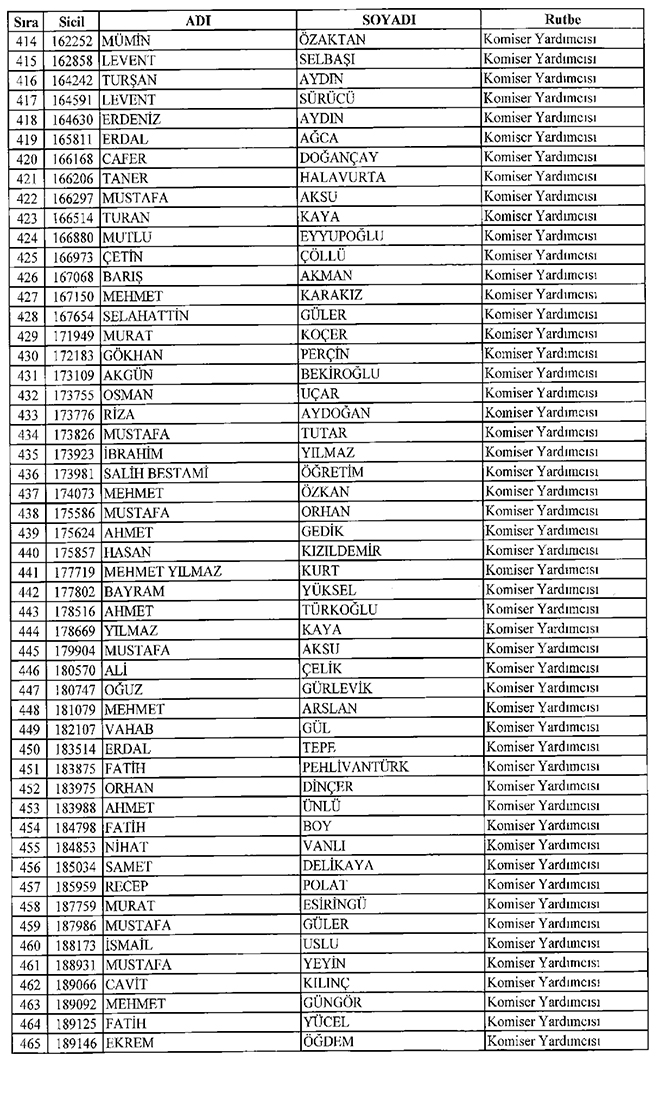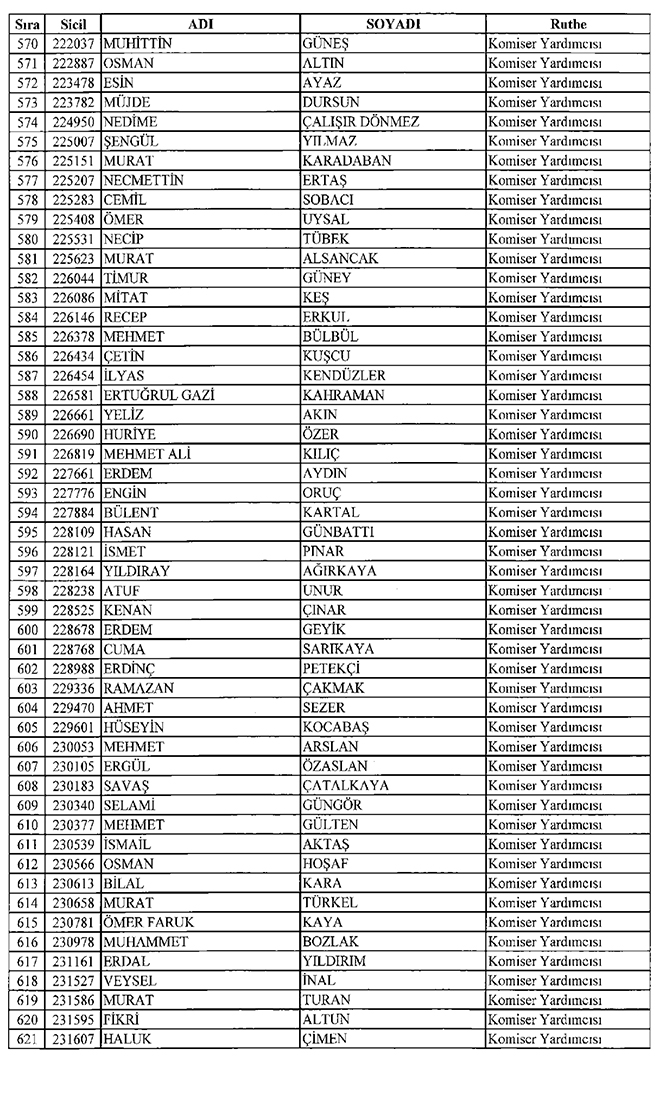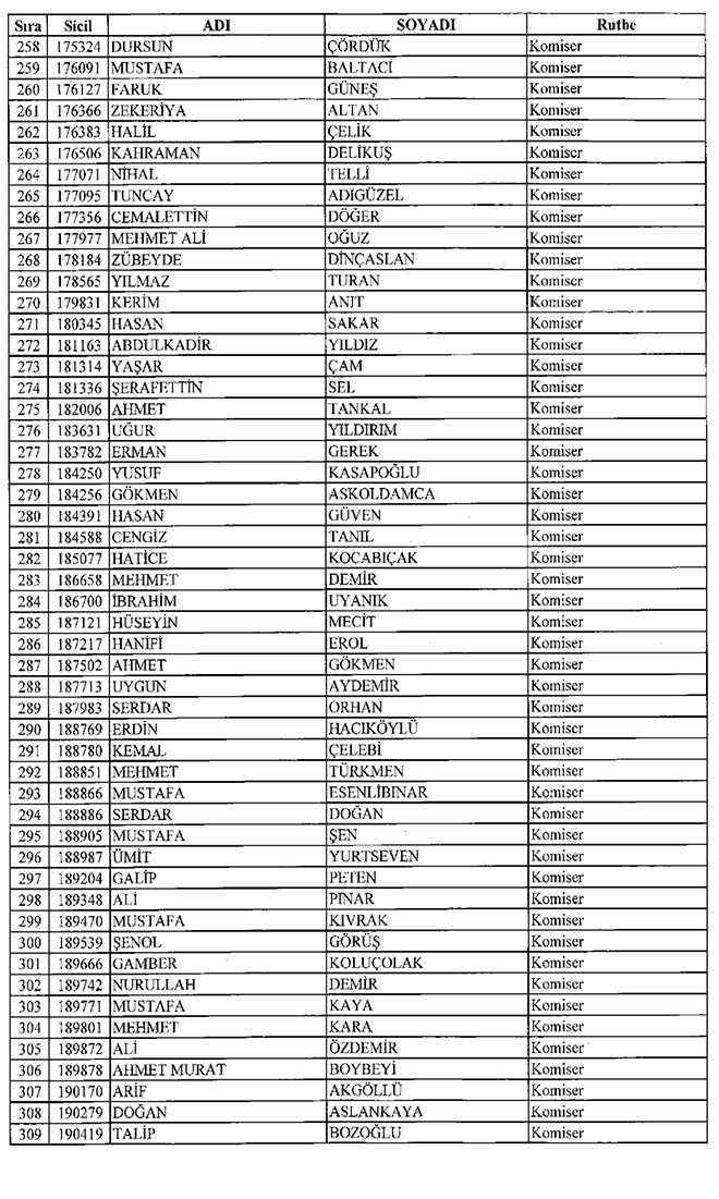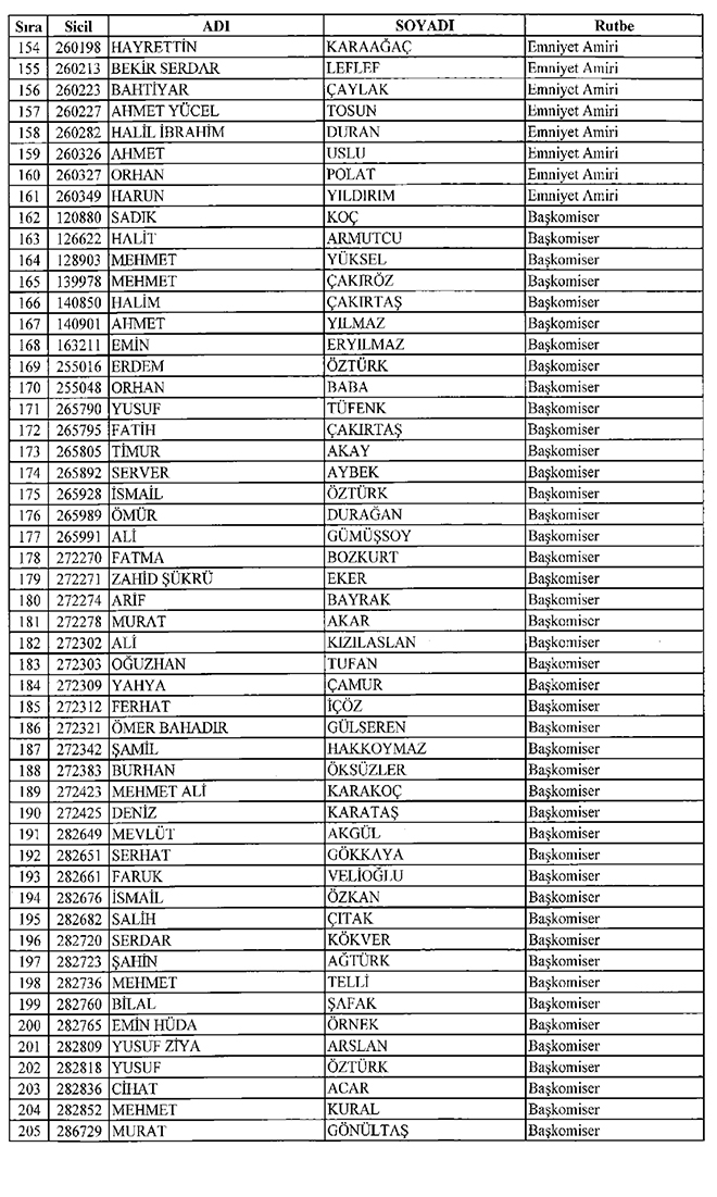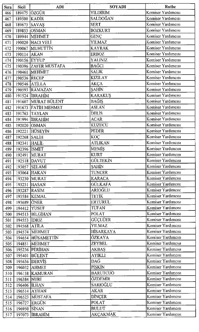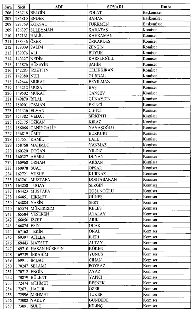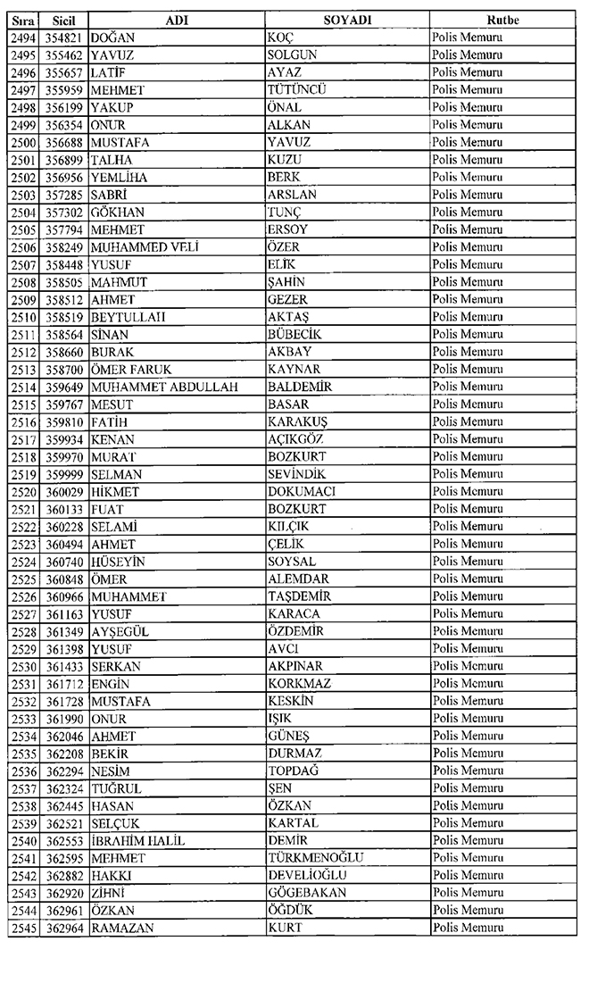 679 sayılı KHK ile Emniyet'ten ihraç edilenlerin listesi