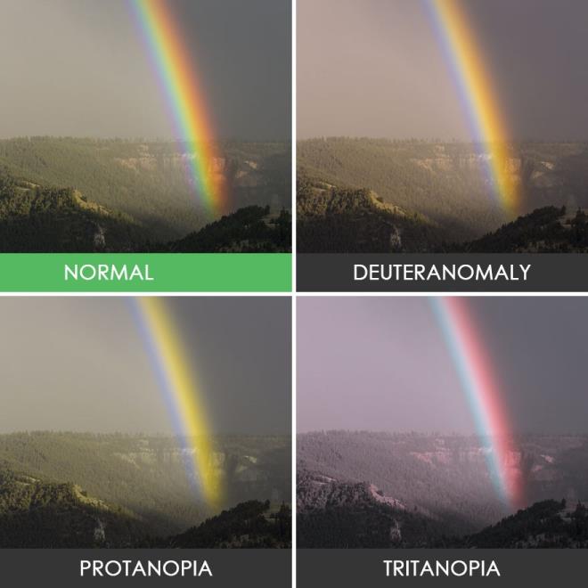 Tritanopya'lı insanlar renkleri yeşilimsi / pembe bir tonla görürler. renk körlüğünün Çok nadir bir biçimidir ve erkeklerin ve kadınların sadece% 0.0001'ini etkilediğine inanılıyor.