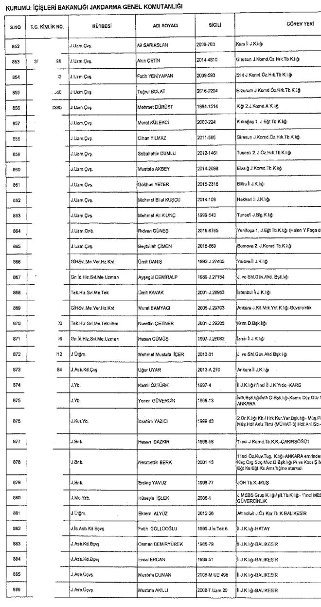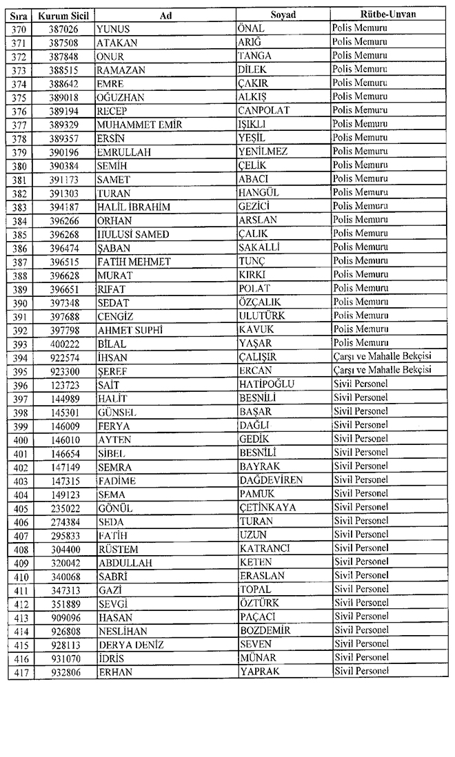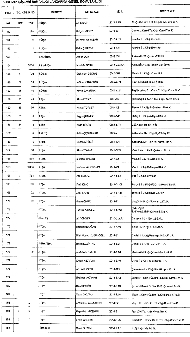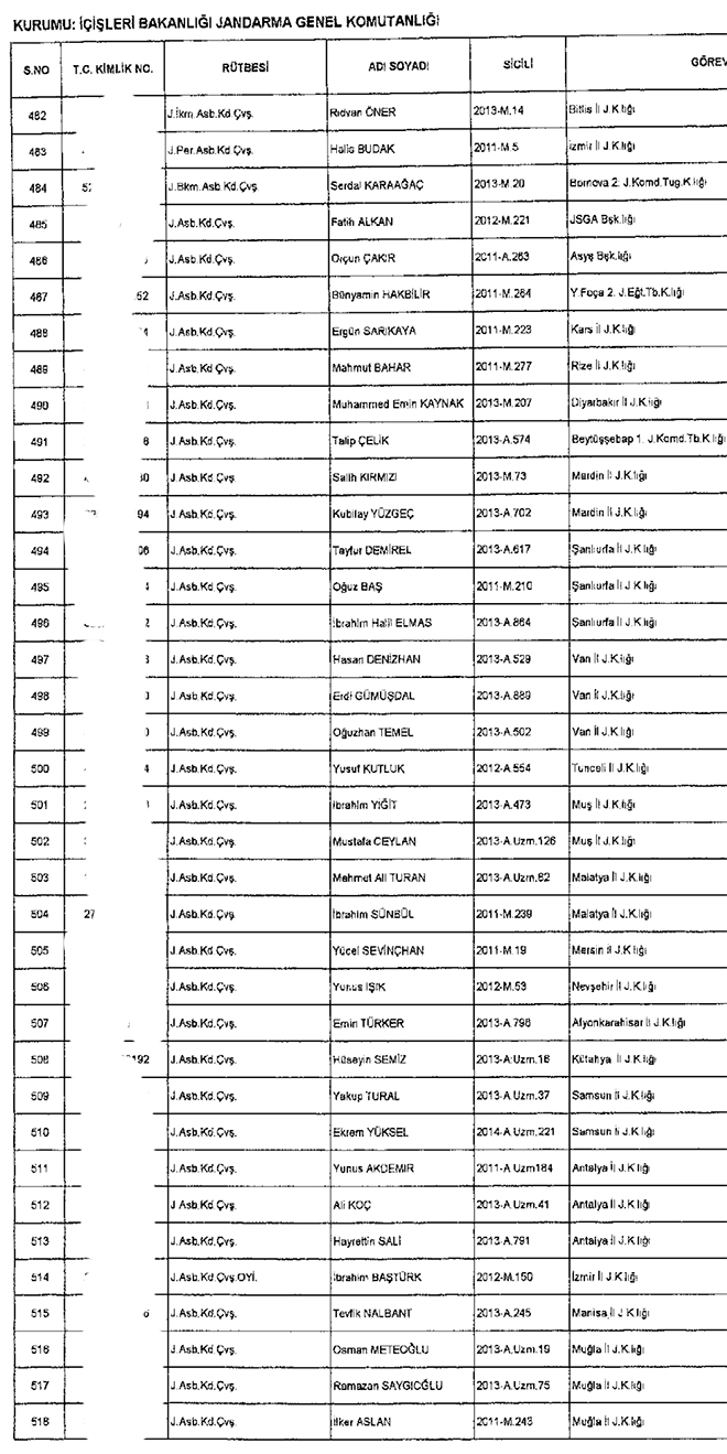 İhraç Edilen Polis Ve Jandarmaların Listesi