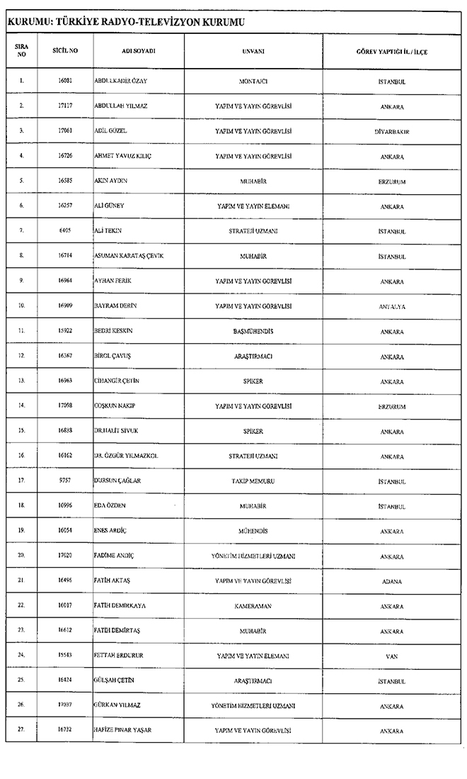 686 sayılı KHK ile ihraç edilen diğer kamu personeli