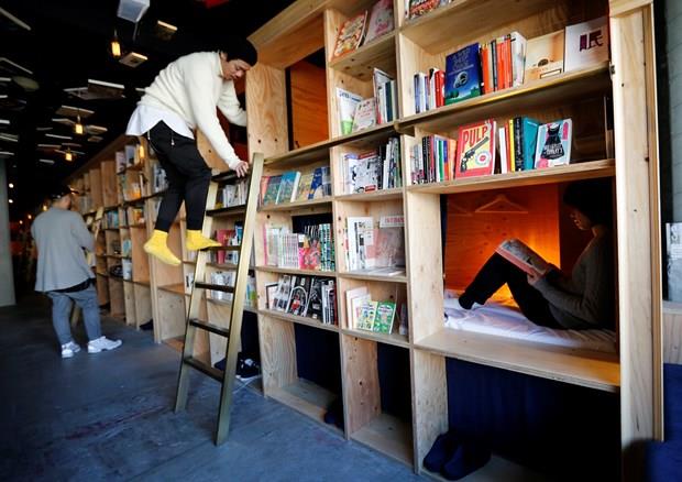 “Book and bed” (Kitap ve yatak) isimli otelde konaklayanlar, bin 700 kitabın bulunduğu kütüphanenin arkasındaki ranzalarda geceliyor.