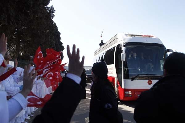 Polisin geniş güvenlik önlemi aldığı ve tüm cemaatin aranarak içeri alındığı camiye gelen Erdoğan, camiye girmeden önce çevre binalardan kendisine sevgi gösterisinde bulunan vatandaşları selamladı.