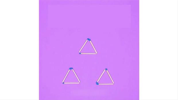 Fotoğraftaki üçgenden, 3 üçgen şekli nasıl yaparsınız? Unutmayın, kibritleri 3 kere hareket ettirme hakkınız var.