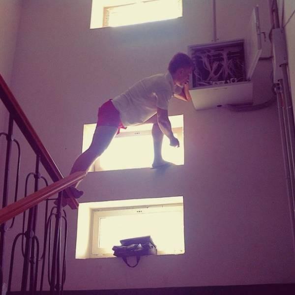 Güvenlik önlemi nedir bilmeyen hayatını tehlikeye atan çılgın insanlar! Sakın evde yolda işte denemeyin...