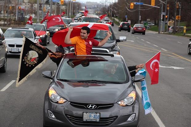 Anayasa değişikliği için yapılan halk oylamasında, resmi olmayan sonuçlara göre "evet" çıkmasının ardından, dünyanın dört bir yanında yaşayan Türkler kutlamalar yaptı.