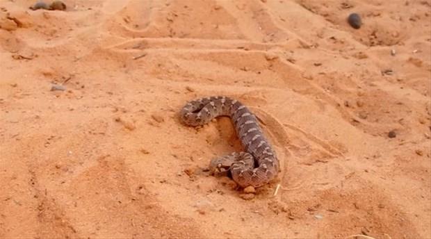 Burun ucu gergedan boynuzu gibi küçük ve yukarı doğru uzanmasından dolayı bu adı alan boynuzlu engerek, tehlike anında saldırmasıyla meşhur. -