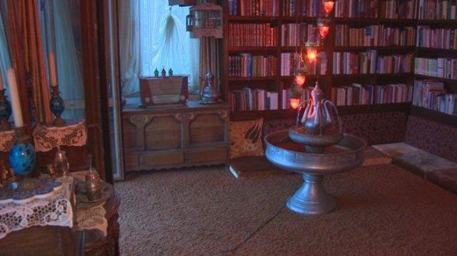 Ünlü oyuncu, "Evin içi oldukça zevkli tasarlanmıştı. Ben sadece eskimiş duvar kağıtlarını aslına uygun yeniledim o kadar. Bir de kendi zevkime göre mobilyalar ilave ettirdim. Bunlardan en önemlisi kitaplığımdır." ifadeleriyle sözlerini sürdürdü....
