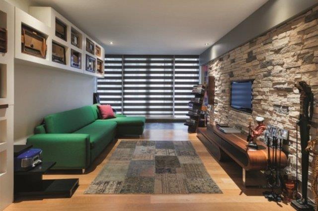 “Evde maskülen stil sevdiğime karar verdim. Yerde koyu gri seramikler ve salonda koyu parke hoşuma gidiyor.”