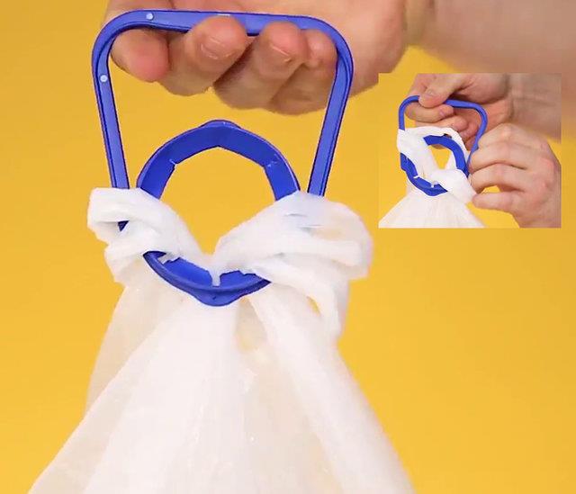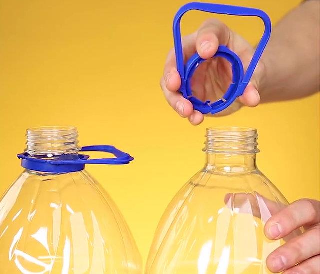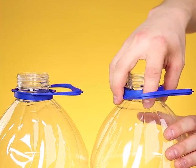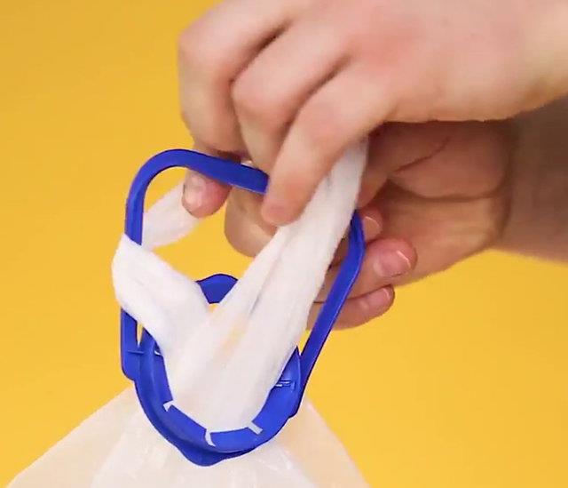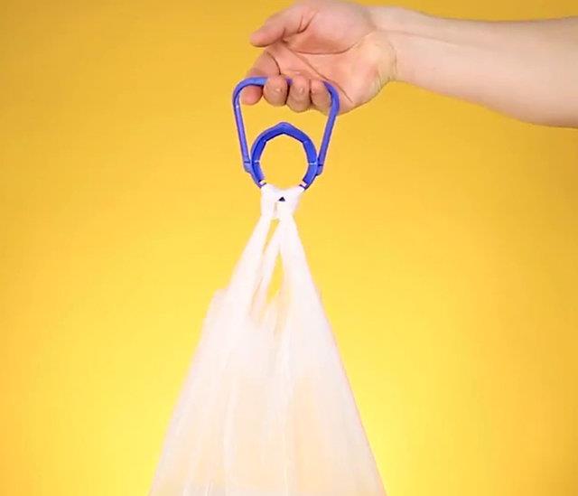Plastik poşetleri taşımak ellerinizi acıtıyorsa, su şişelerinin kopçalarını kullanabilirsiniz. Bu plastik parçaları poşete bağlayın. İşte hazır!
