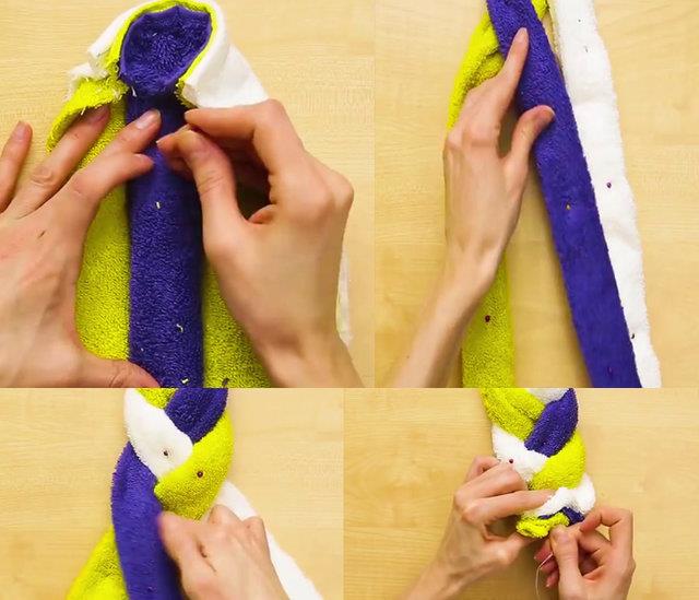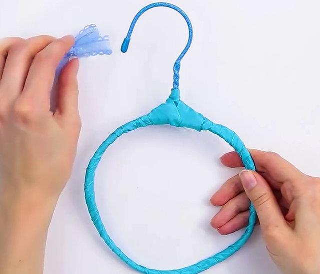 Yine kullanmadığınız eski atkılarınızdan yüz havlusunu asmak için süslü askılık yapabilirsiniz.