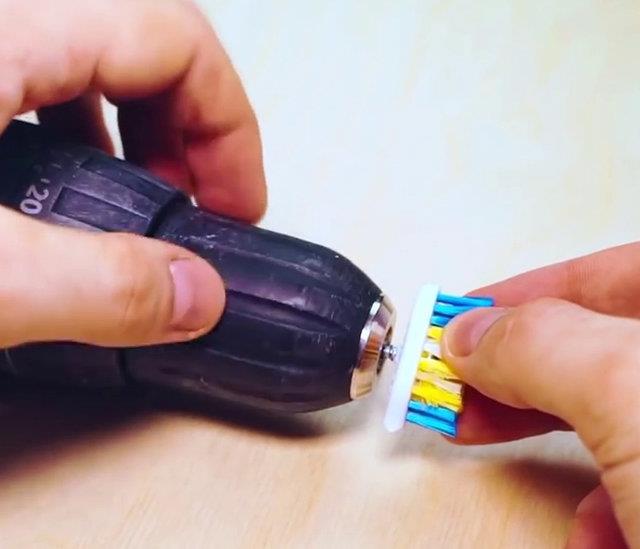 Matkap ucuna büyük fırça ya da diş fırçası takarak banyo fayanslarının aralarındaki pislikleri yorulmadan temizleyebilirsiniz.