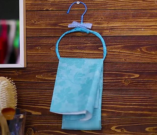 Kullanmadığınız askılarınızdan da banyo peçeteliği yapabilirsiniz.