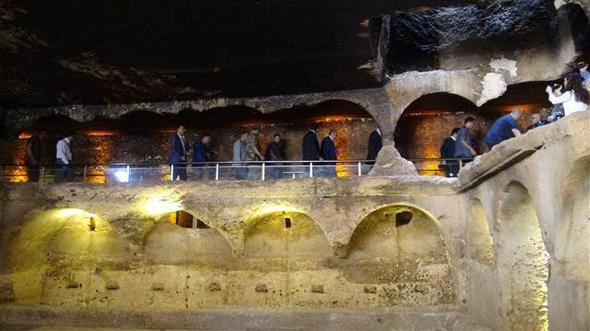 Galeri mezar hakkında Vali Mustafa Yaman’a bilgi veren Kültür ve Turizm İl Müdürü Alaaddin Aydın, "Burası 6 ve 7’inci yüzyıllarda kullanılmış bir mezarlık alanı. Yeniden dirileceklerine inanan insanların kemikleri var. Yapılan kazı çalışmasıyla çok sayıda insanın kemikleri ortaya çıkarıldı. Kutsal kitaplarda bahsedilen Ezekiel Peygamberin ruhlara nefes vermesi ve yeniden diriliş mucizesinin kapı girişinde işlendiği galeri mezar, 573 yılında Sasaniler tarafından savaşta öldürülenlere itafen, Doğu Romalılar tarafından 591 yılında yaptırılmıştır. 2010 yılında Mardin Müze Müdürlüğü tarafından yapılan arkeolojik kazı çalışmalarında yapının alt katında yüzlerce insana ait kemik ile birlikte kandiller ve su kapları açığa çıkartılmıştır. Kandilleri ruhun cennete geçişinde rol aldığına inanıldığı için her mezarlık için bir kandil bulundurulmuş" dedi. -