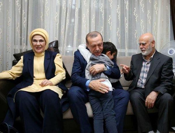 Erdoğan, darbecilerin duruşmalardaki pişkinliklerini hatırlatan şehit eşine, "Sana devlet sözü, eşini katledenler en ağır bedeli ödeyecek" dedi. Cumhurbaşkanı, şehit oğlunu da sevindirdi: Bir gece ansızın gelebilirim dememiş miydim? İşte geldim. Sana bir söz daha, Külliye'de maç yapacağız.