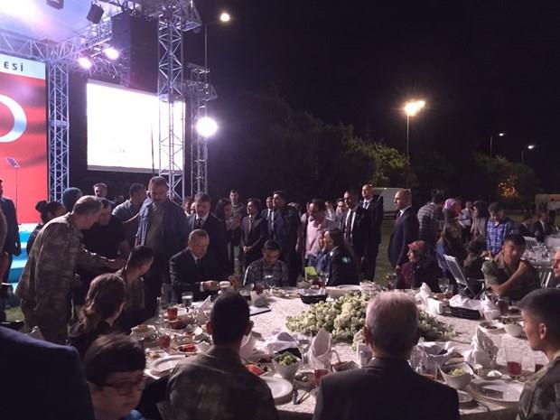Cumhurbaşkanı Recep Tayyip Erdoğan ile 11'inci Cumhurbaşkanı Abdullah Gül, Genelkurmay Başkanı Orgeneral Hulusi Akar, bugün Kayseri’de Büyükşehir Belediyesi tarafından 1'inci Komando Tugayı'nda verilen ve şehit yakınları ile gazilerin de yer aldığı iftara katıldı.