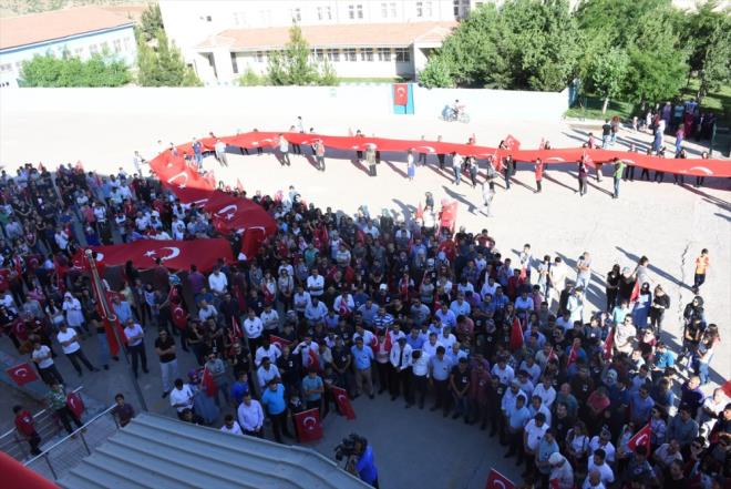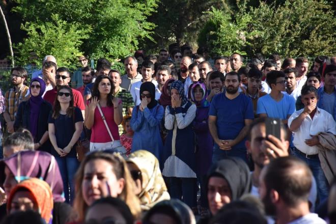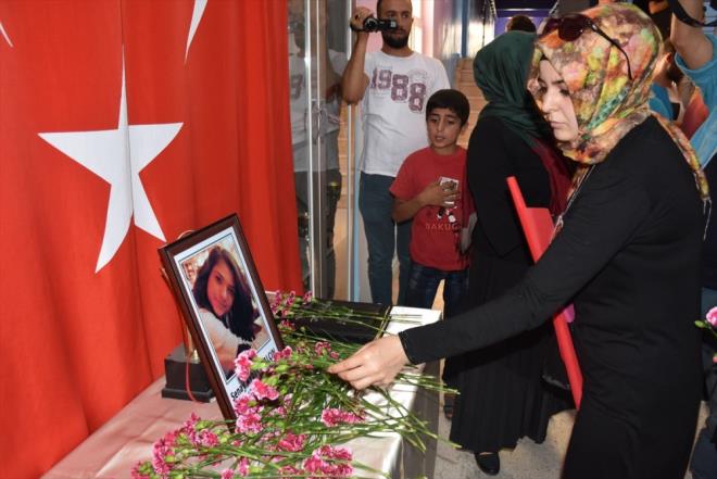 Türk Kızılayı Batman Şubesinin 200 metre uzunluğundaki Türk bayrağı ile destek verdiği yürüyüşün ardından okul bahçesinde toplanan vatandaşlar, şehit öğretmen için dua etti, İlçe Milli Eğitim Müdürlüğü müzik zümresi şehit öğretmeni anlatan şiirler okudu.