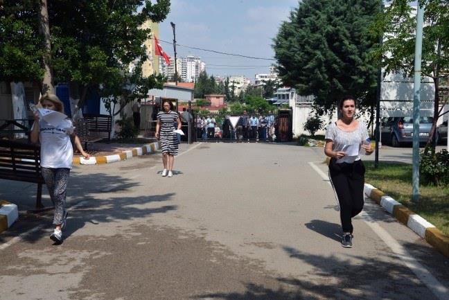 Bir aday ise yarın gireceği sınava bir gün önce geldiği için okul binasından gülerek ayrıldı. Bir başka aday 09.43'te okula koşarak gelerek dakikalar kala sınava yetişti. Sınava gireceği okula son dakika gelen kızı görevliler sakinleştirdi. Görevlilerin su vermek istediği kız oruçlu olduğunu söyleyip koşarak sınav salonuna girdi.