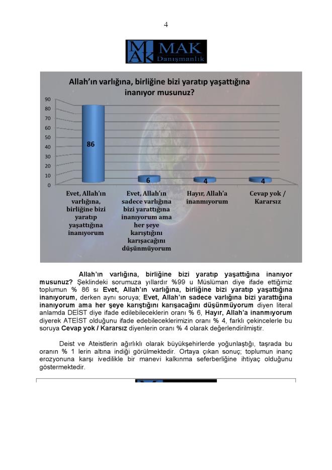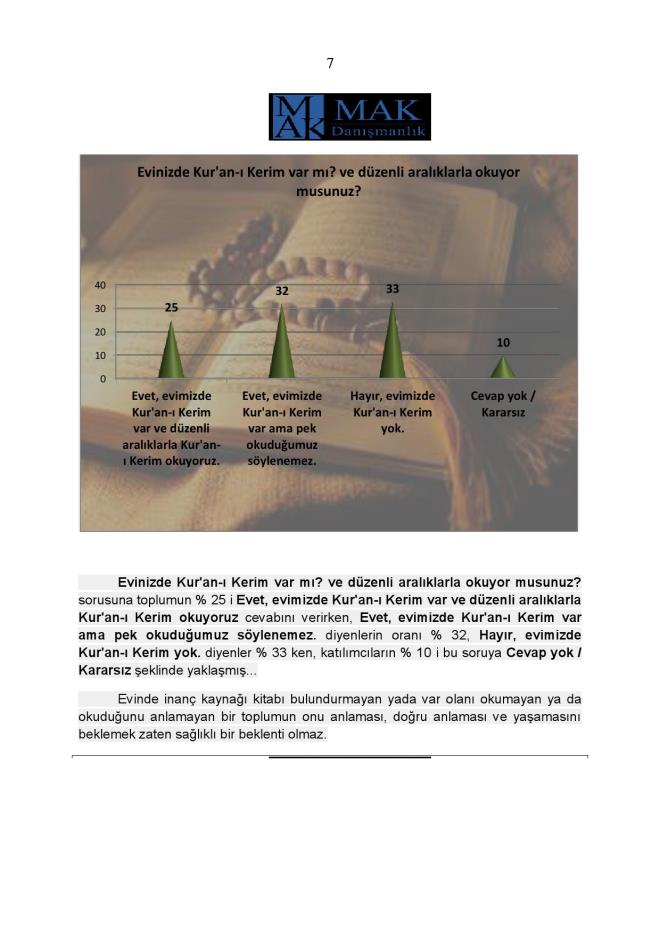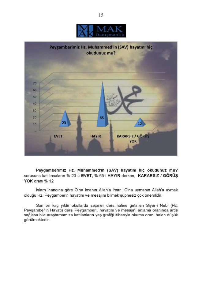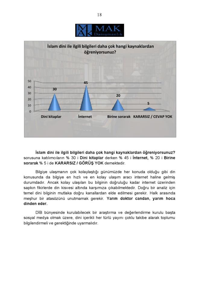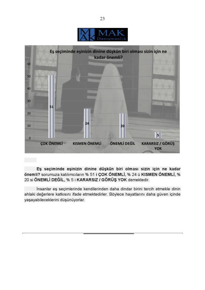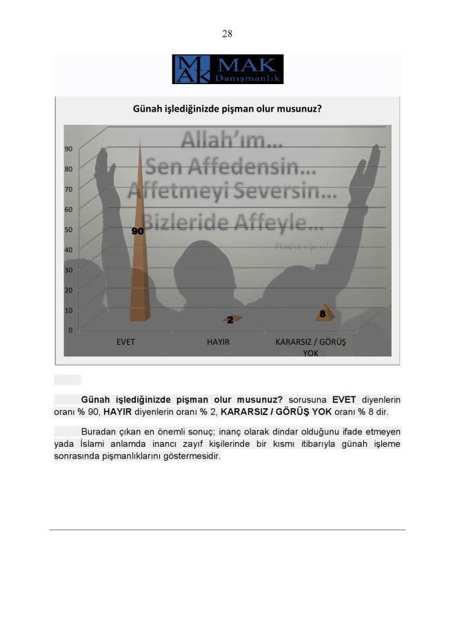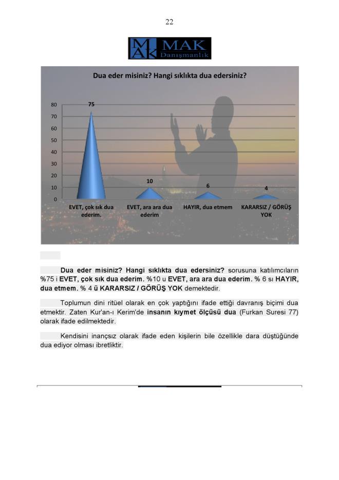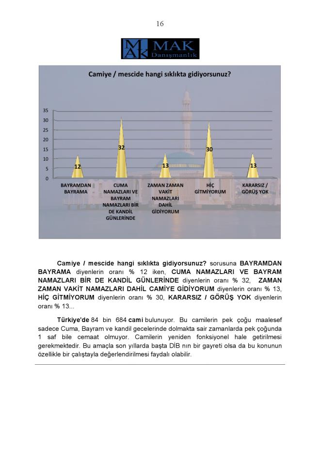 Bu çalışma 12 haziran - 18 haziran 2017 tarihleri arasında Türkiye'de toplumun dine ve dini değerlere bakışı Araştırması üst başlığı ile MAK danışmanlık tarafından 30 Büyükşehir ve (ağrı, aksaray, artvin, bayburt, bitlis, Bolu, düzce, elazığ, giresun, gümüşhane, karaman, Karabük, kars, kastamonu, kırıkkale, kırklareli, Kütahya, nevşehir, osmaniye, sinop, bilecik, yozgat, Uşak ) 23 il, 154 ilçe de 5400 kişi ile yüzyüze görüşmelerle Yapılmıştır.