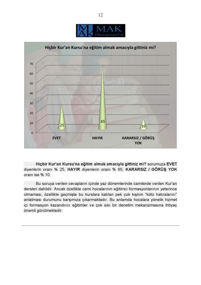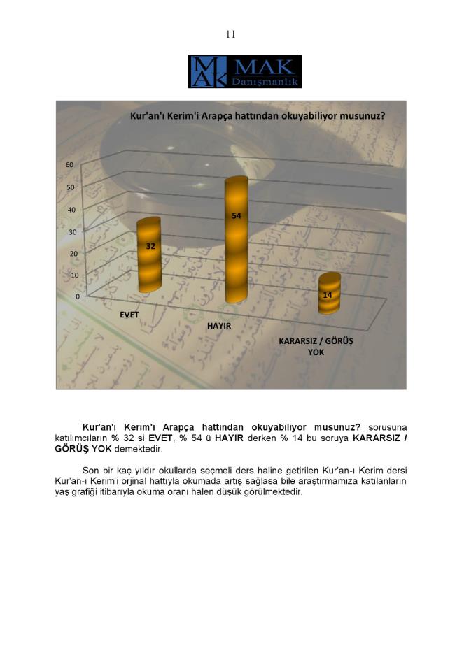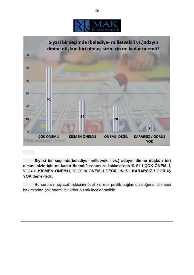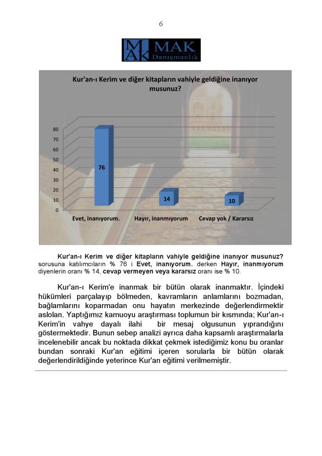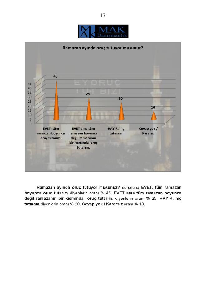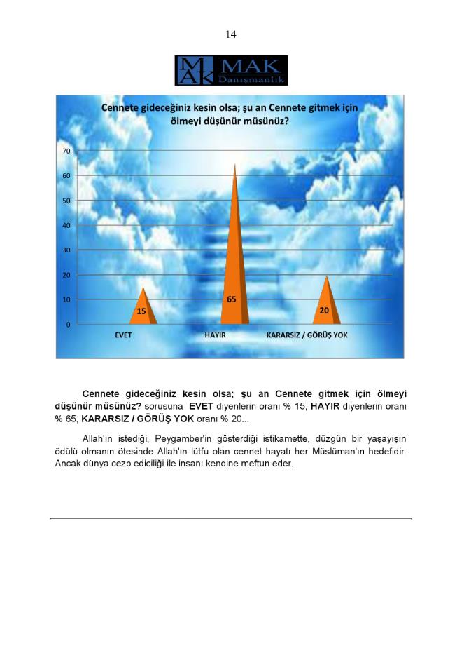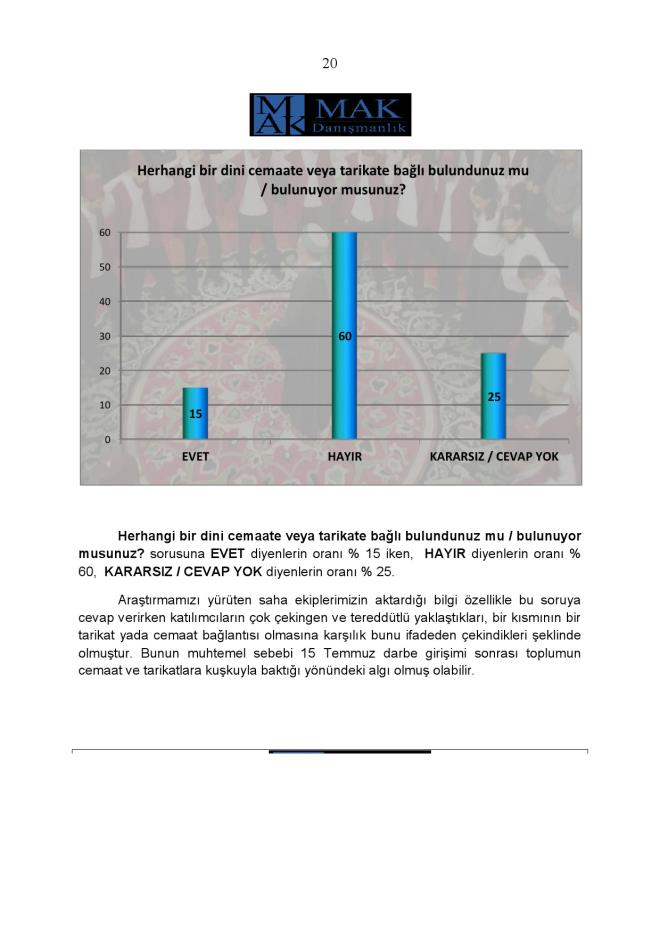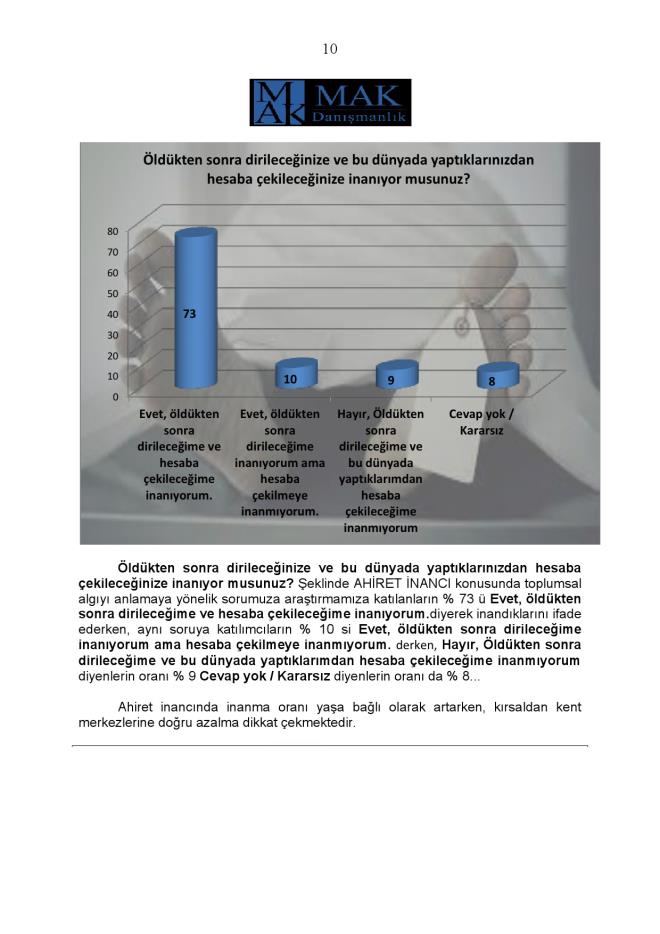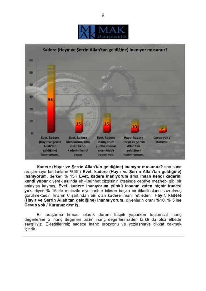 Bu çalışma 12 haziran - 18 haziran 2017 tarihleri arasında Türkiye'de toplumun dine ve dini değerlere bakışı Araştırması üst başlığı ile MAK danışmanlık tarafından 30 Büyükşehir ve (ağrı, aksaray, artvin, bayburt, bitlis, Bolu, düzce, elazığ, giresun, gümüşhane, karaman, Karabük, kars, kastamonu, kırıkkale, kırklareli, Kütahya, nevşehir, osmaniye, sinop, bilecik, yozgat, Uşak ) 23 il, 154 ilçe de 5400 kişi ile yüzyüze görüşmelerle Yapılmıştır.
