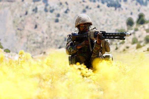 Bulundukları bölgeyi düşman unsurlarından temizleyen asteğmenler, daha sonra dost bölgeye sıyrılıyor.