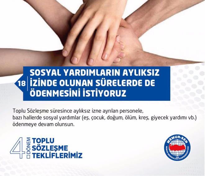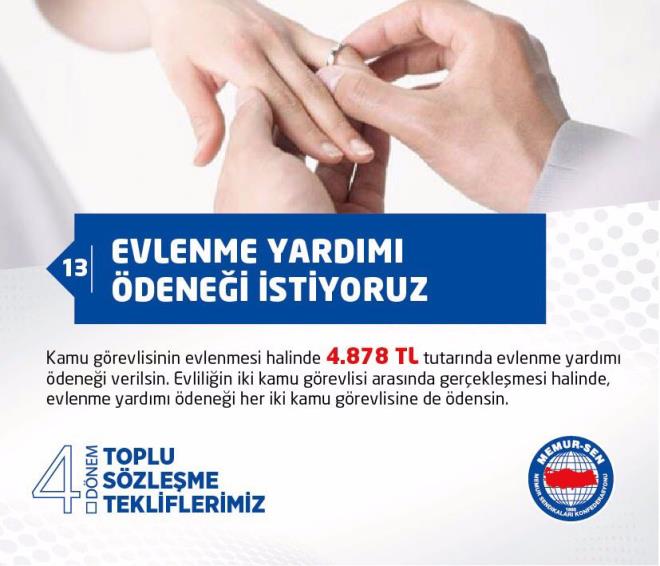 Kamu görevlileri açısından yeni kazanımlara, kamu görevlileri sendikacılığı açısından yeni eşiklerin aşılmasına zemin oluşturacak 4.Dönem Toplu Sözleşme'ye dair Memur Sen'in teklifleri...