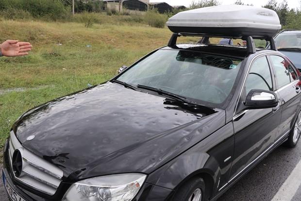 Ceviz büyüklüğündeki dolu nedeniyle araçların camları kırıldı.