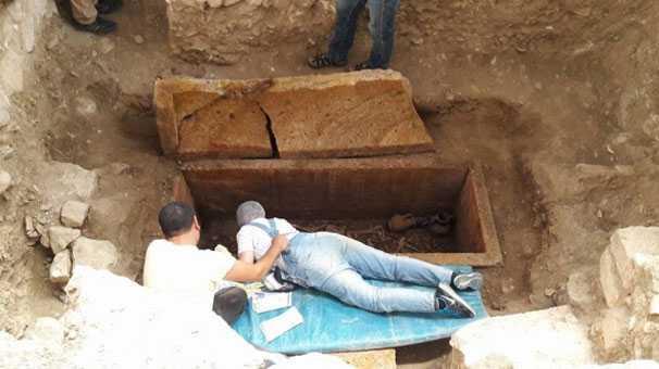 2 bin 500 yıl sonra tekrar gün yüzüne çıkan lahitte biri kadın iki yetişkine ait kemikler ve çeşitli objeler bulundu.
