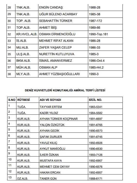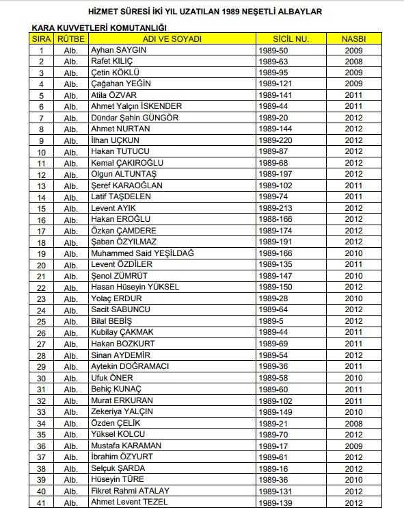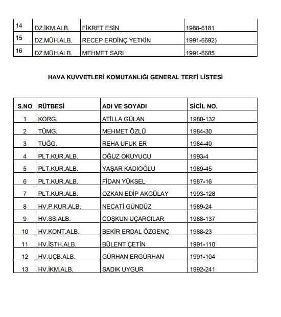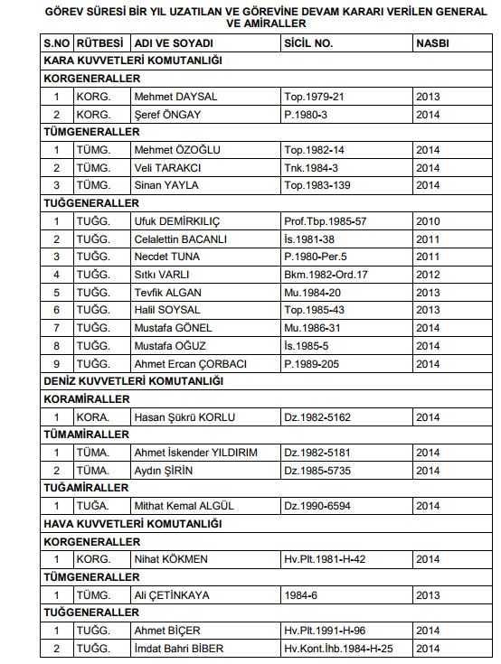 Görev süresi uzatılan ve terfi ettirilen komutanların tam listesi