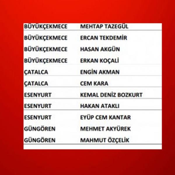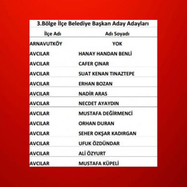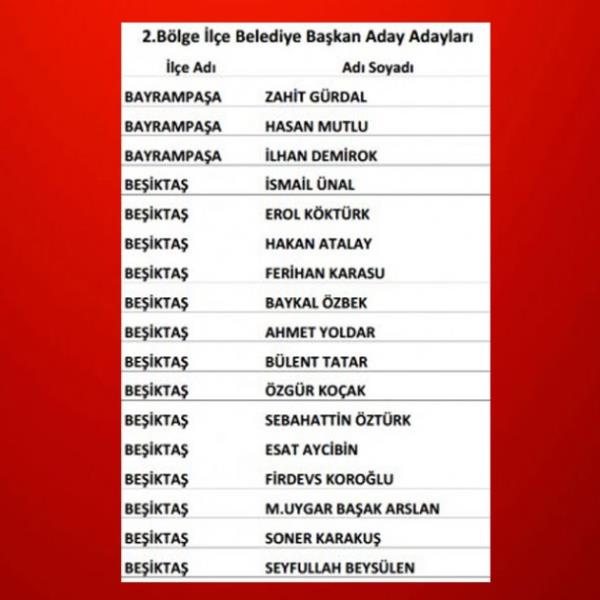 CHP İstanbul İl Başkanlığı ilçe belediye başkan aday adaylarını açıkladı.