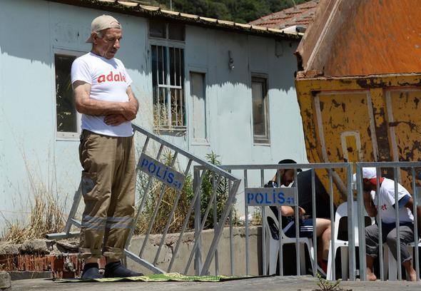 İstanbul il sınırında kızı ile yemek yedikten sonra yürüyüşe başlamak için ayakkabılarını giyip son hazırlığını yaparken...