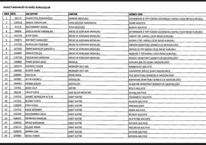 Resmi Gazete'de yayımlana 693 sayılı KHK ile göreve iade edilenlerin tam listesi