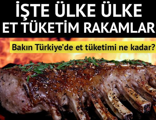Bir yılda kişi başına düşen et miktarının en fazla olduğu ülke 120.2 kilogram ile ABD olurken, Türkiye'de ise bir yılda kişi başına düşen et tüketim miktarının 25.3 kg olduğu belirlendi.