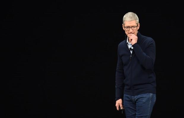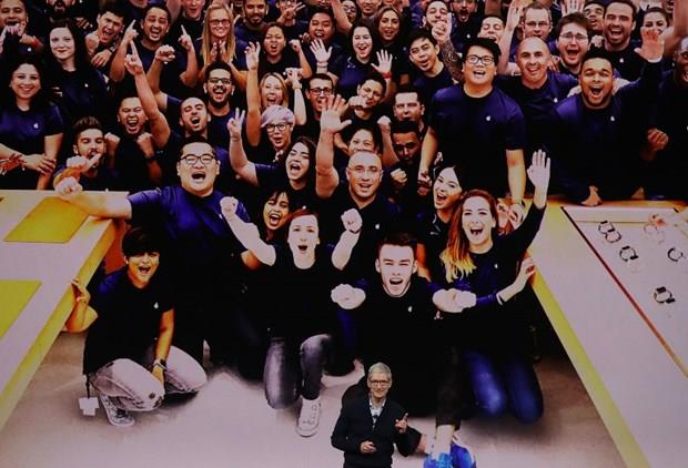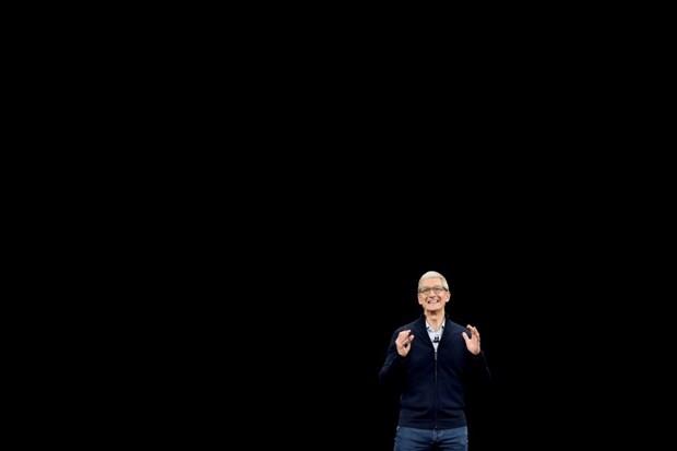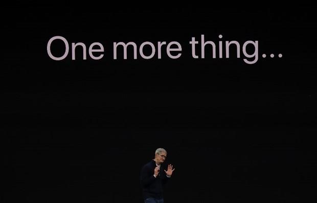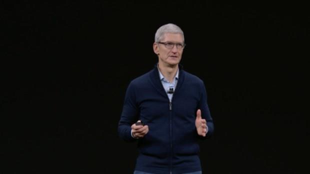 Gecede Harvey ve Irma kasırgalarının kurbanlarını da anan Apple CEO'su Tim Cook'un konuşması sırasında Steve Jobs'un yer aldığı bir görüntü yansıtıldı.