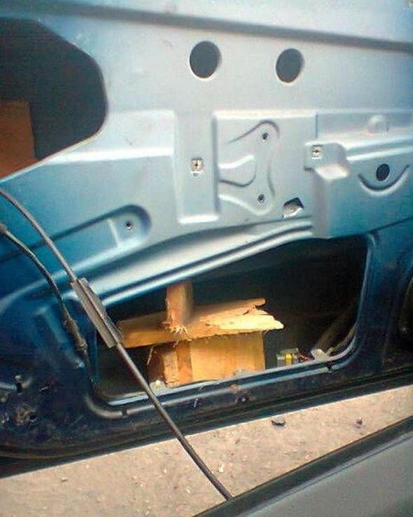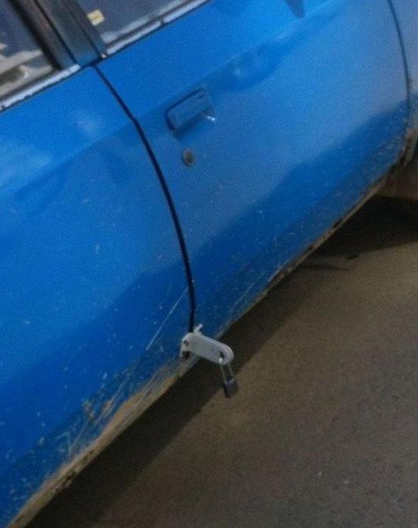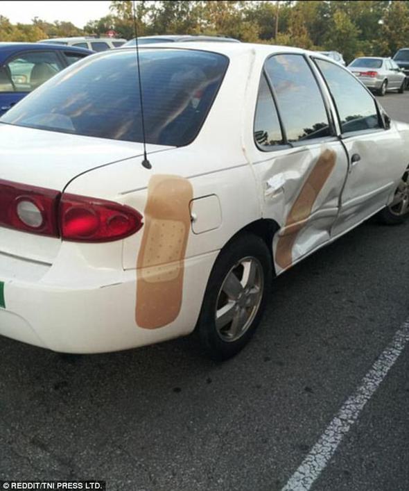 Sosyal medyada kaza yaptıktan ya da aracı arızalandıktan sonra pratik bir şekilde çözüm üretmek isteyen otomobil sürücülerinin fotoğrafları paylaşılıyor.