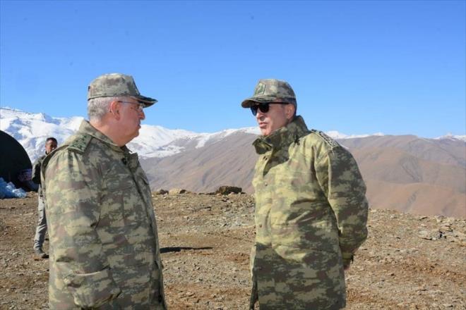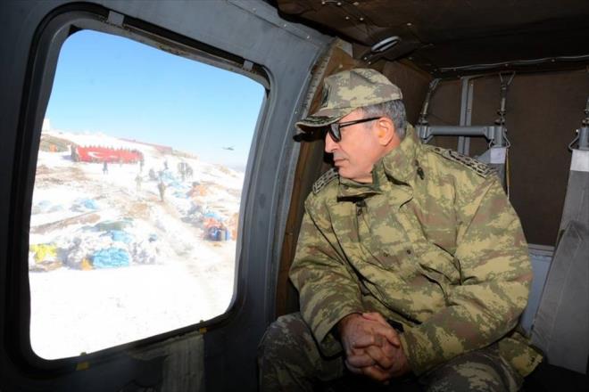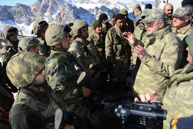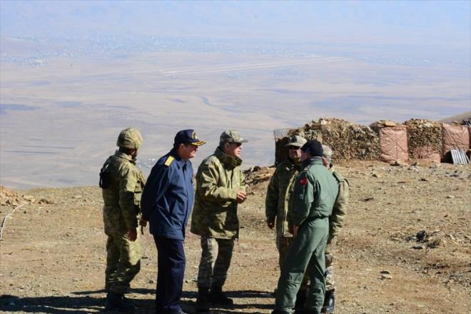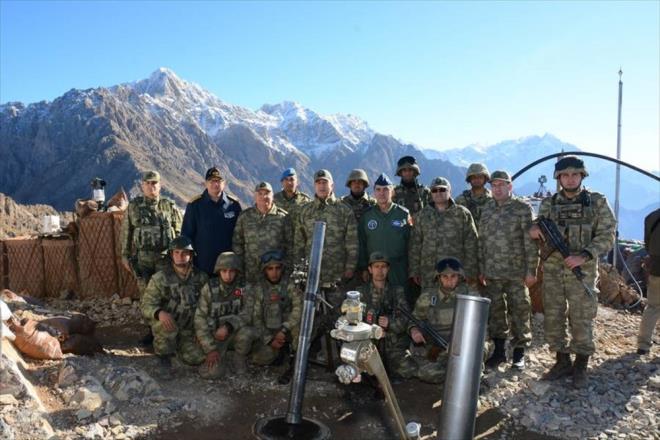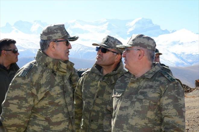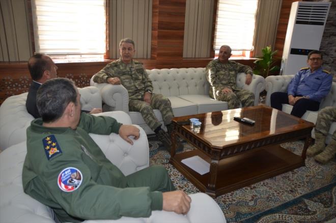 Orgeneral Hulusi Akar, beraberinde Kara Kuvvetleri Komutanı Orgeneral Yaşar Güler, Deniz Kuvvetleri Komutanı Koramiral Adnan Özbal ve Hava Kuvvetleri Komutanı Orgeneral Hasan Küçükakyüz ile Hakkari’nin Yüksekova ilçesi Dağlıca’da bulunan 6’ncı Hudut Tabur Komutanlığında inceleme ve denetlemelerde bulundu.
