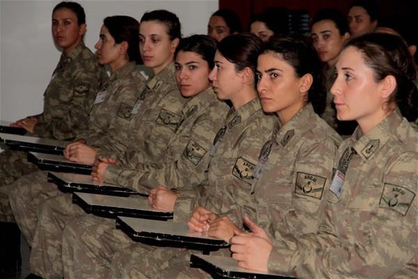 Birinci Astsubay Eğitim Bölüğü Takım Komutanı Jandarma Öğretmen Üsteğmen Begüm Çardak ise kadın ve erkek öğrencilerin aldıkları eğitimler hakkında bilgi verdi.