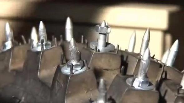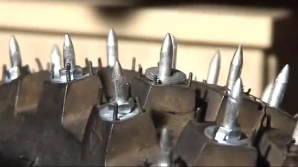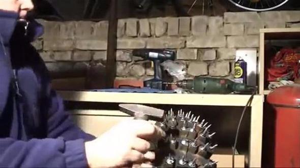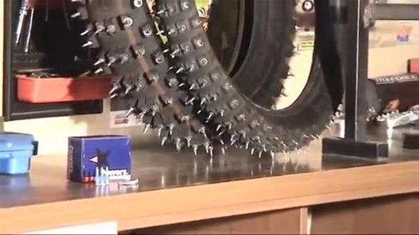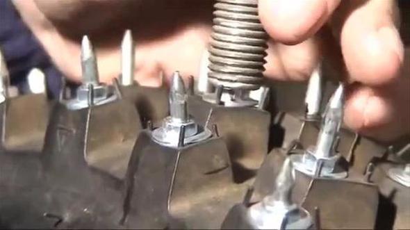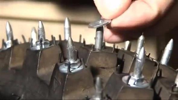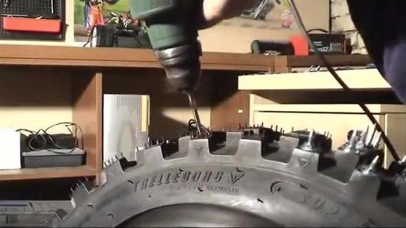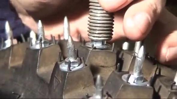 Zorlu kış günlerinde kar lastiği bulmakta güçlük çeken adam, garajında kendi kar lastiğini yaptı.