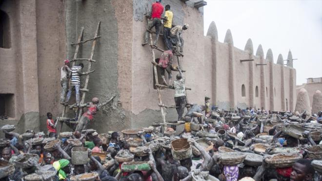 Çamur Bayramı' Dünyanın çamurdan yapılan en büyük yapısı olan Cenne Ulu Camii, her yıl binlerce kişi tarafından çamurla kaplanıyor. Caminin onarıldığı bu güne 'Çamur Bayramı' deniyor. Çamur Bayramı, bölge halkı için özel bir günü temsil ediyor. Sabahın erken vakitlerinden toplanan kadın, çocuk, erkek, genç ve yaşlı... Camiye yapılan yeni sıva, bölgedeki yüksek sıcaklıklar nedeniyle çok hızlı kuruyor ve cami, bir yıl sonrasına hazırlanmış oluyor...