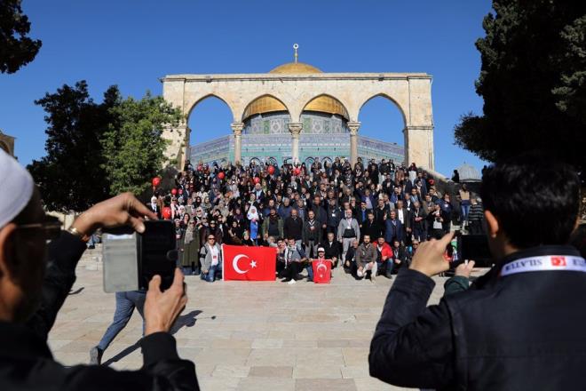 ABD'nin Kudüs kararına kınayan sloganlar atan eylemciler, Filistin bayrakları ile Mescid-i Aksa'nın fotoğraflarını taşıdı.
