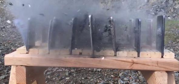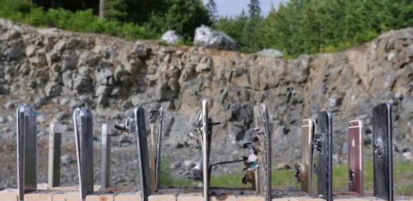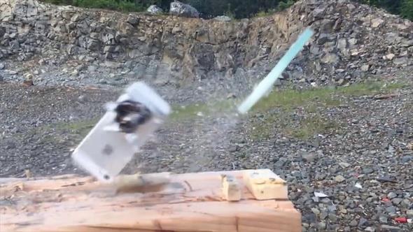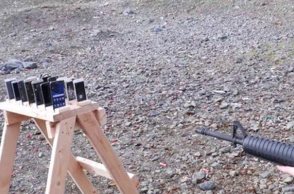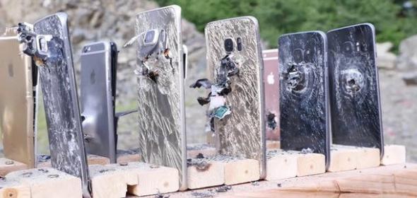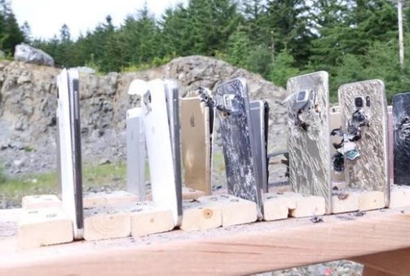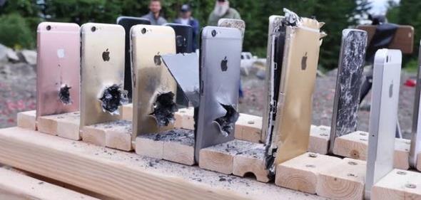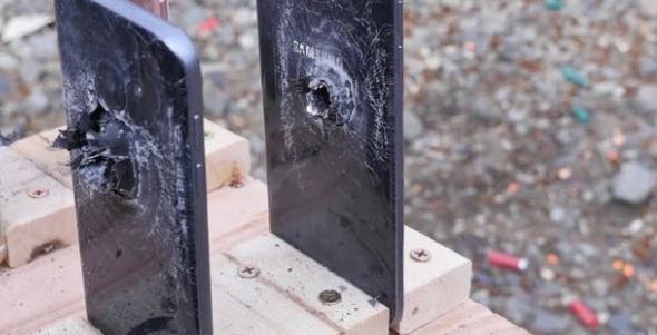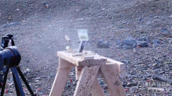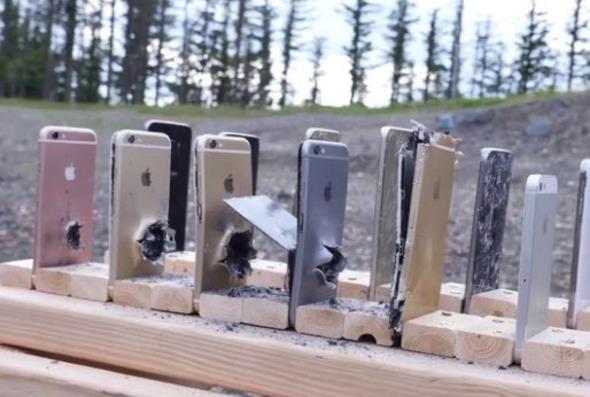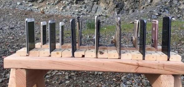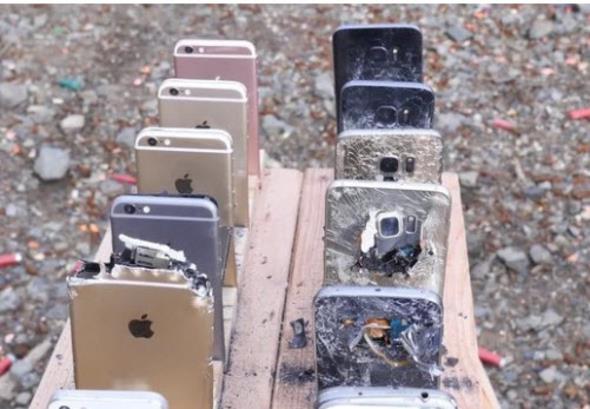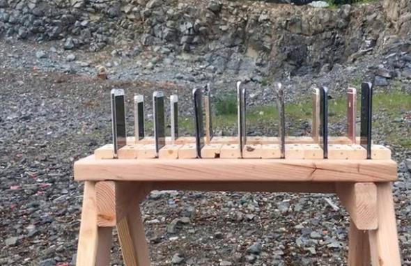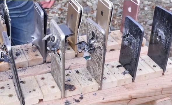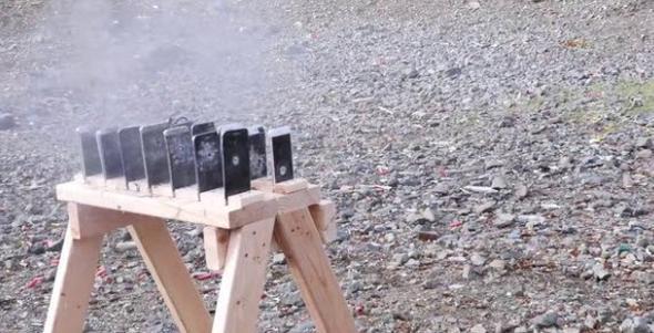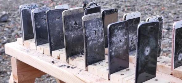 iPhone paramparça... Ancak durun, daha bitmedi! Aynı şekilde bir de birden fazla iPhone ve Samsung'u arka arka dizsek ve ateş etsek sonuç ne olurdu dersiniz?