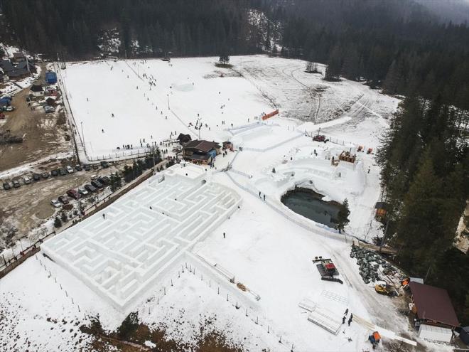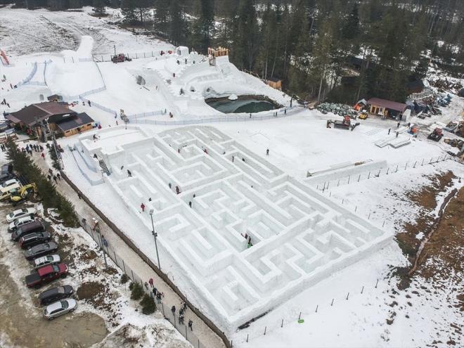 Polonya'nın Zakopane şehrinde Guinness dünya rekorunu kırmak için dünyanın en büyük kar labirenti yapıldı.