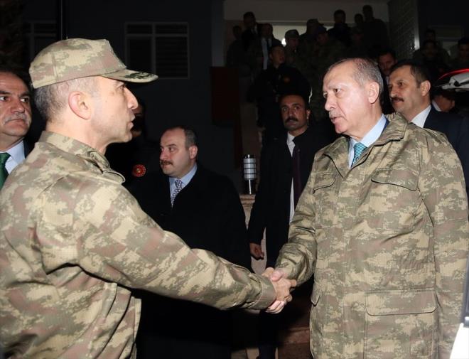 Erdoğan, Zeytin Dalı Harekatı'nın sevk ve idaresinden sorumlu olan 2. Ordu'nun Hatay'daki Harekat Merkezi'nde görev yapan askerlere hitaben yaptığı konuşmada, ulusal güvenliği sağlama nedeniyle Afrin’de gerçekleştirilen operasyonun bölgeyi terör unsurlarından temizlemeyi amaçladığına dikkati çekti.Cumhurbaşkanı Erdoğan, ulvi bir görev icra ettiklerini hatırlattığı askerlere başarı dileklerini de iletti.
