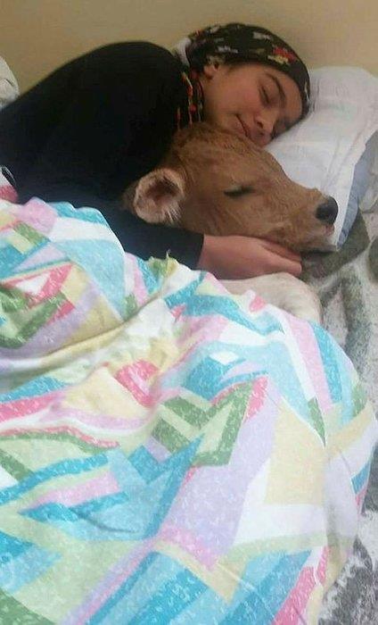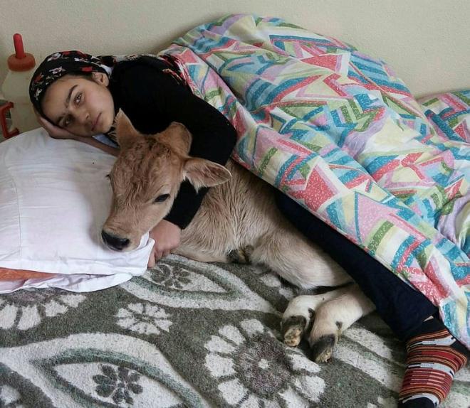 Akşam bu yatakta yattık. O sağ tarafta ben sol tarafta. Şimdi iyi, birazcık ateşi var" diyerek sevincini paylaştı. Hamdu Sena, çiftçilere ve hayvancılıkla uğraşanlara da "Her yeni doğan buzağı bir anne adayıdır. Buzağılarımız ölmesin'' mesajını iletti.