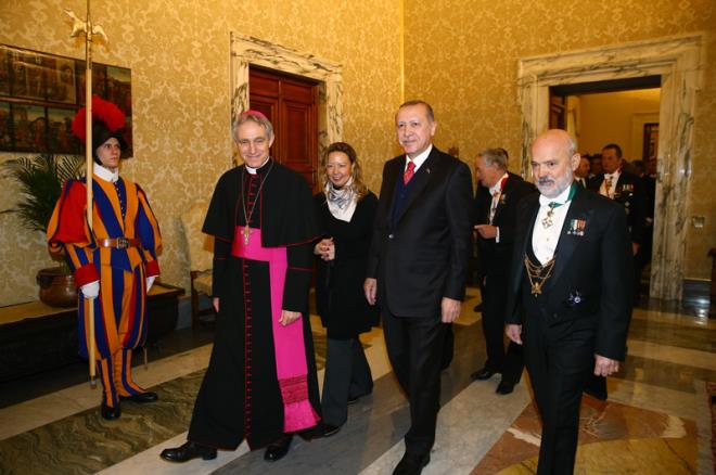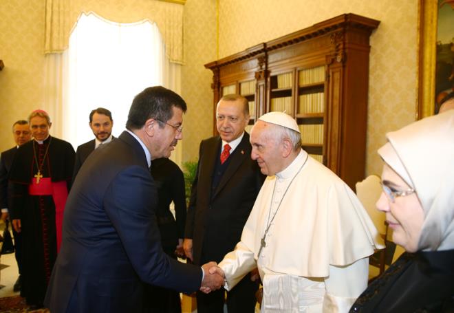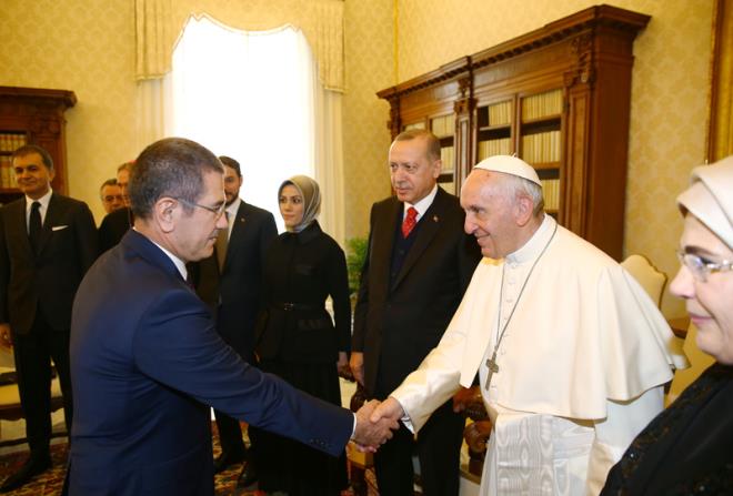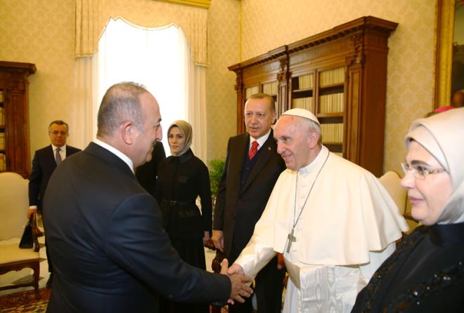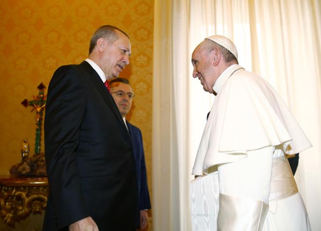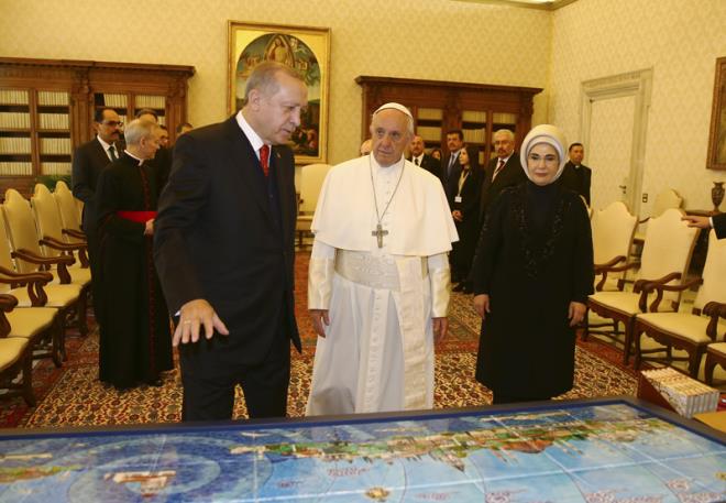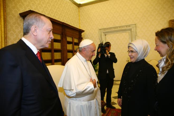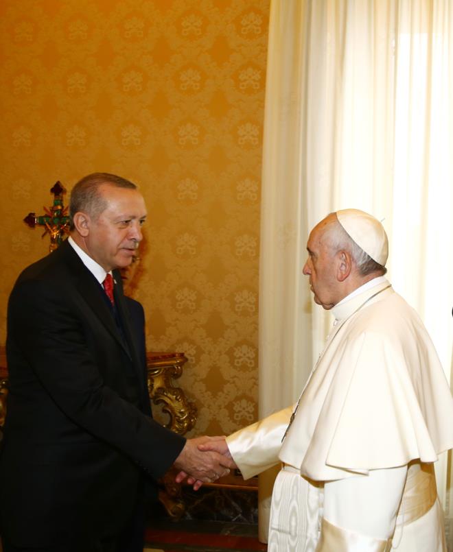 Papa Vatikan görüşmesinde Erdoğan'a ziyaretinden dolayı teşekkür etti. Papa ile Erdoğan'ın dünya ajansları tarafından flaş haber olarak geçilen görüşmesi basına kapalı olarak 1 saat sürdü. Papa ABD başkanı Donald Trump ile olan görüşmesini yarım saat tutmuştu.