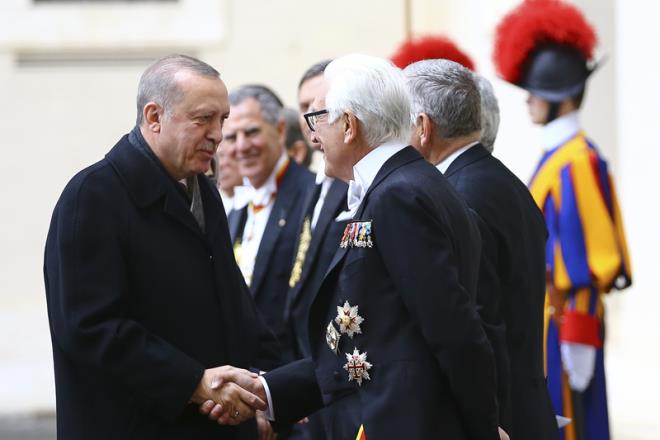 ERDOĞAN'IN VATİKAN ELEŞTİRİSİ : AB'nin temellerinin atıldığı Roma Antlaşması'nın 60. yıldönümü nedeniyle Mart 2017'de Roma'ya giden AB üyesi ülkelerin liderleri Vatikan'da Papa Francesco ile de görüşmüştü. Erdoğan bu görüşmeyi eleştirmiş ve şunları söylemişti: "Hayırdır niye Vatikan'da bir araya geldiniz? Papa ne zamandan beri AB üyesi oldu? Haçlı ittifakı kendini eninde sonunda gösterdi".