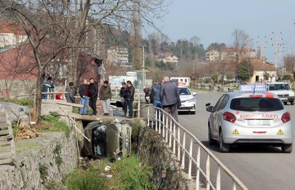 bir anlık dalgınlık sonucu yoldan çıkarak dereye uçtu